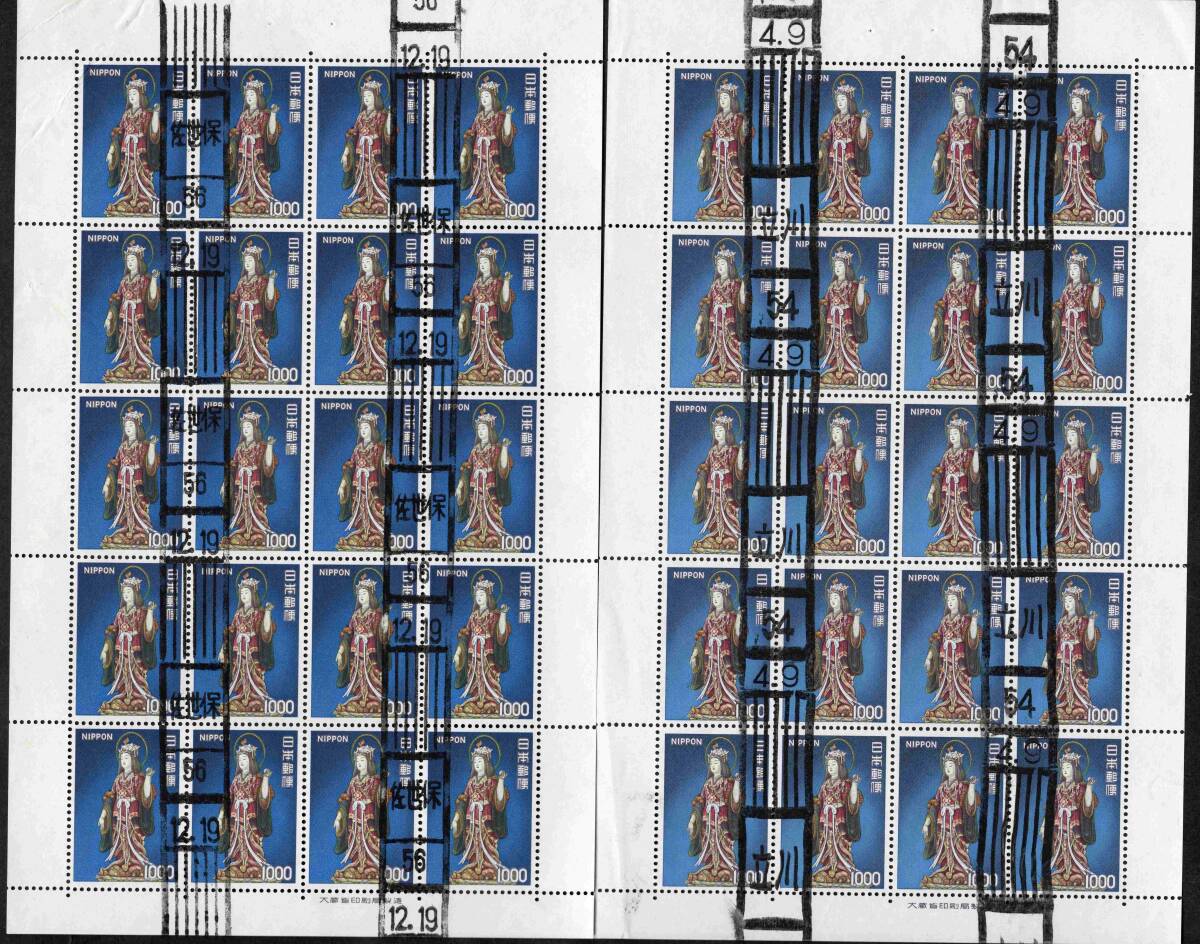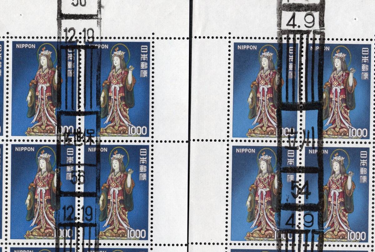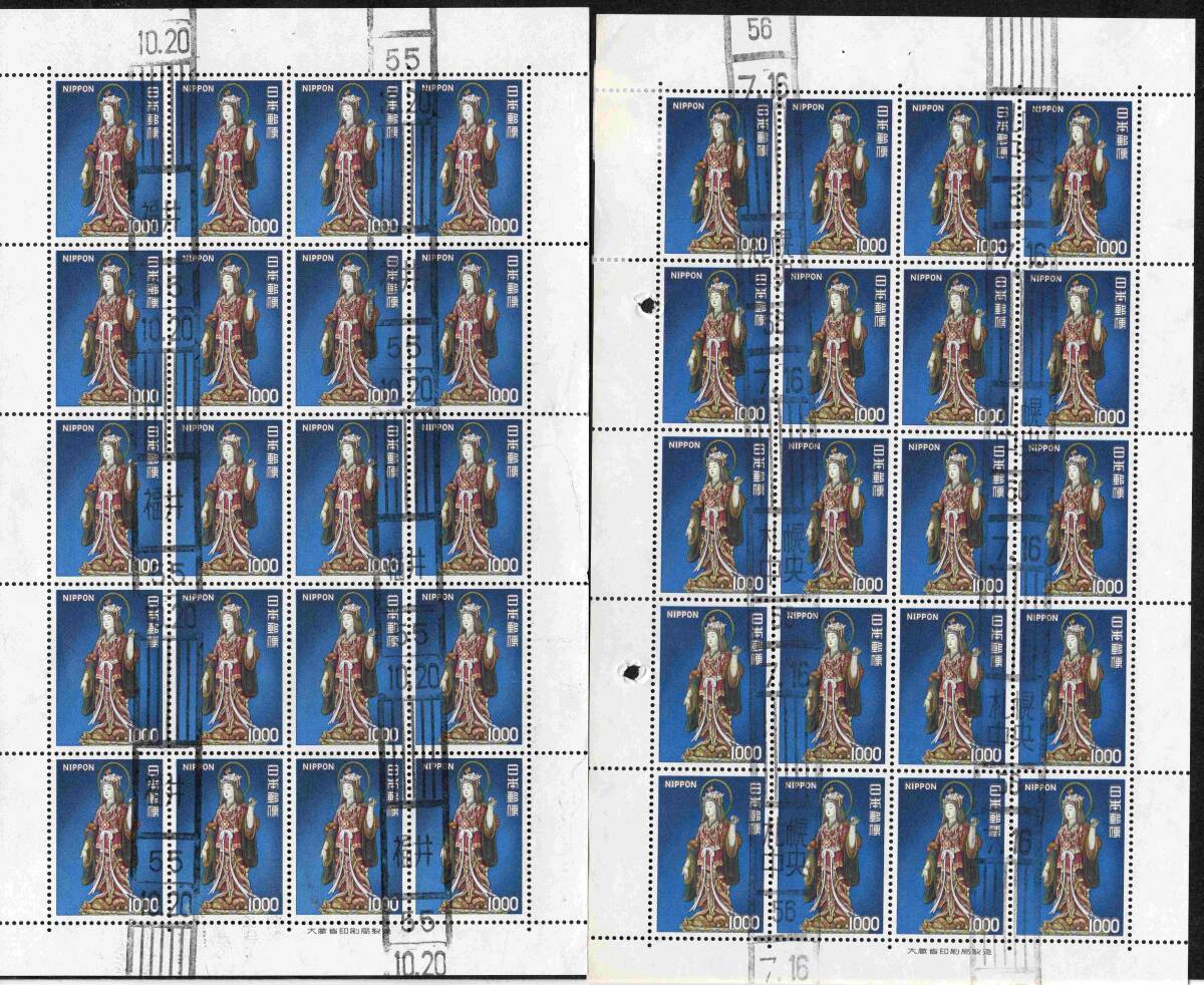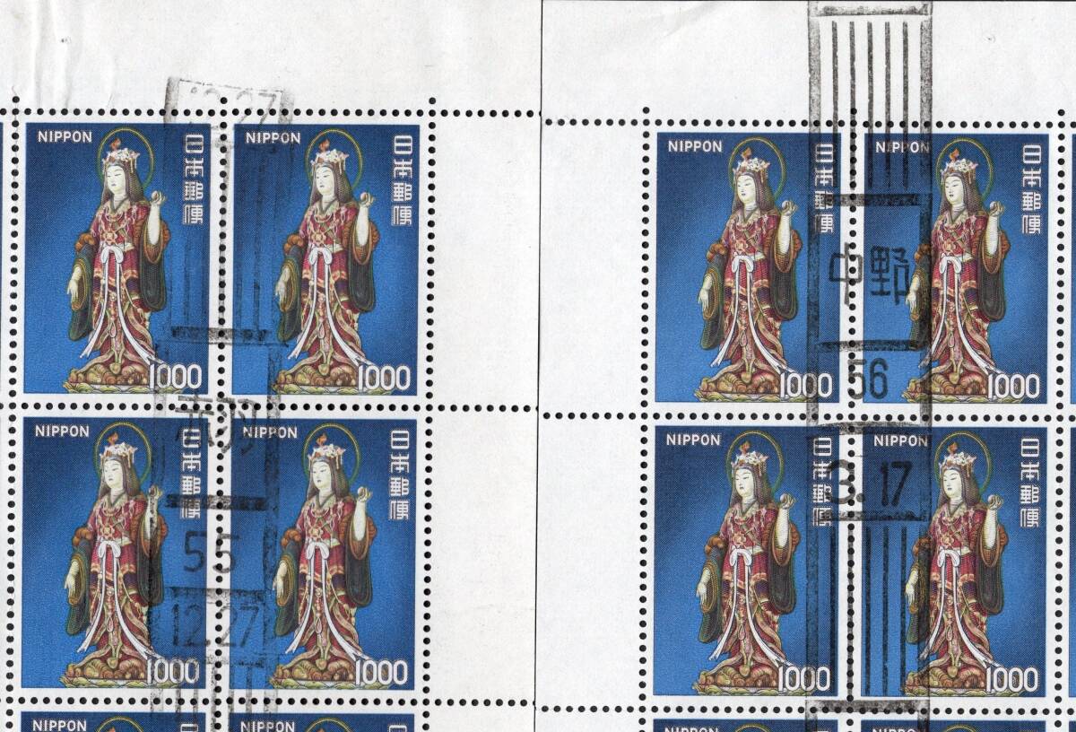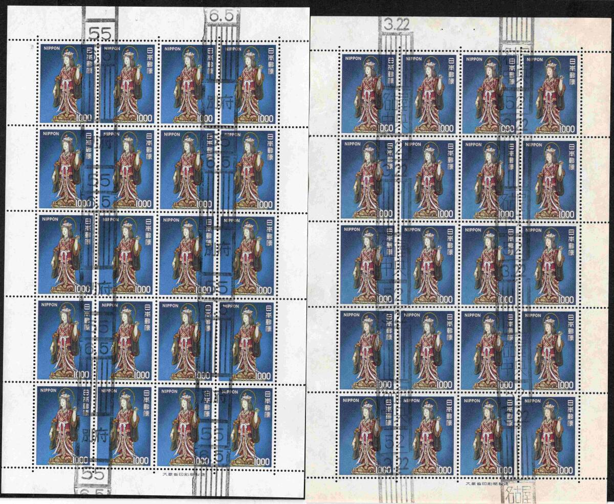 画像の一点、1000円吉祥天 縦2条ロ消し 10局、10シート セット(B)です。