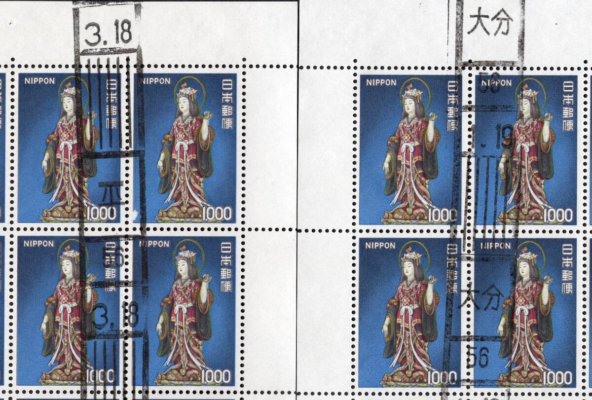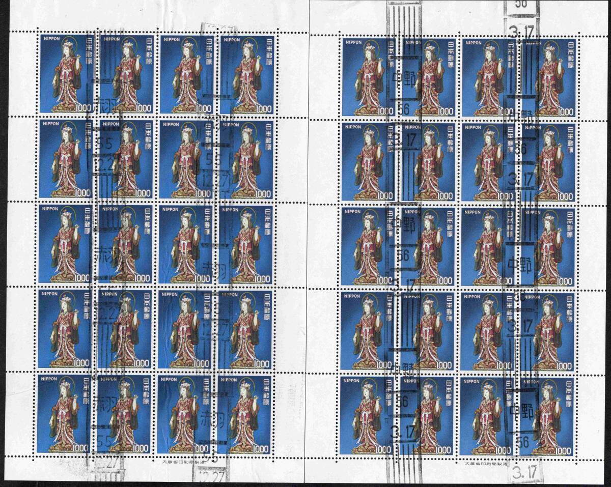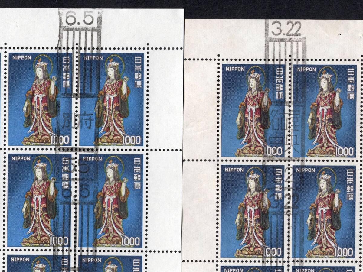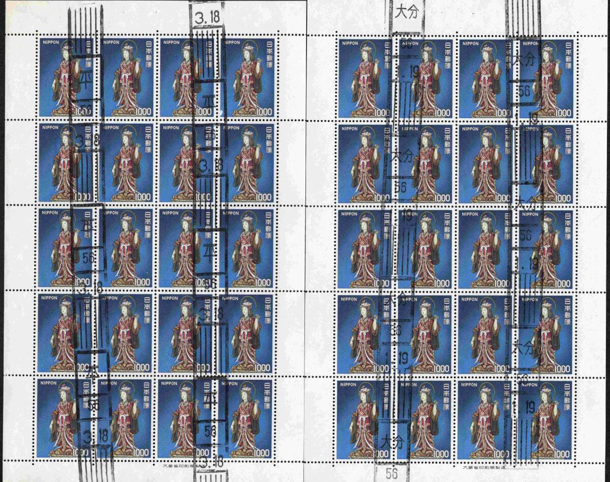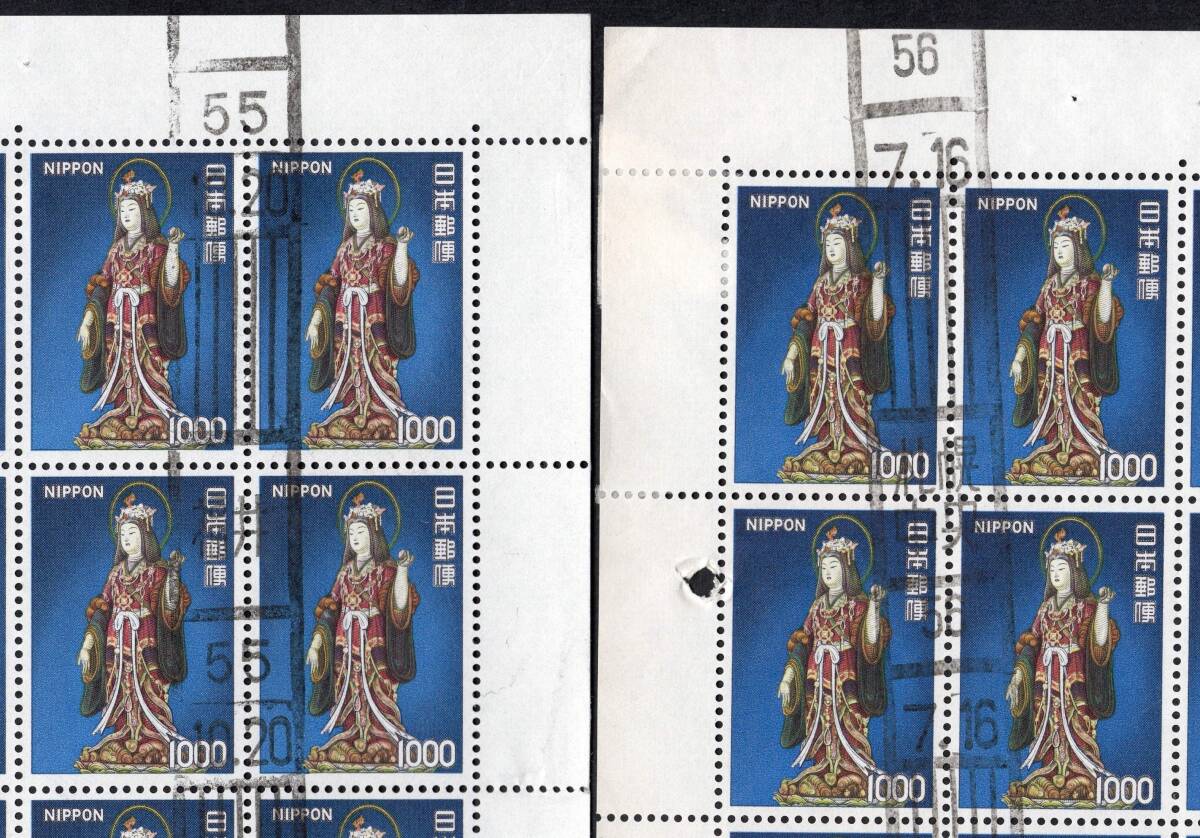 画像の一点、1000円吉祥天 縦2条ロ消し 10局、10シート セット(B)です。