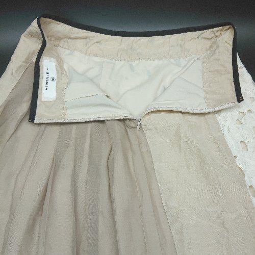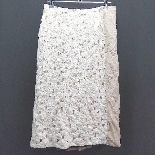 ◇ MEREILLE H 花柄レース刺繍 バックプリーツ 綺麗め ロング タイト スカート 表記なし アイボリー レディース E