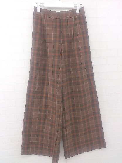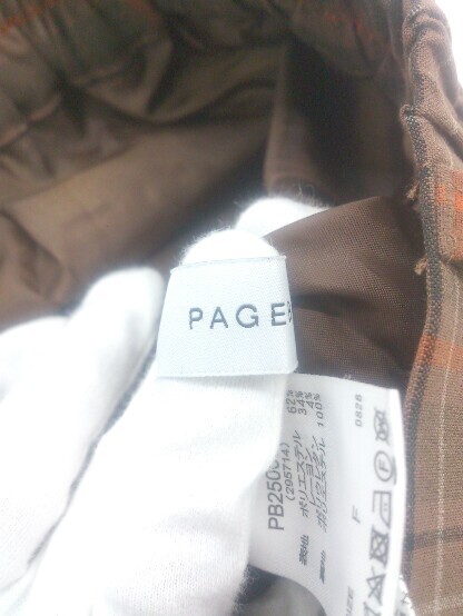 ◇ PAGEBOY ページボーイ タータンチェック タック ワイド パンツ サイズF ブラウン レディース E