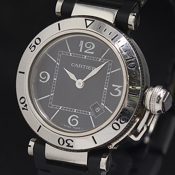 1円 稼働 カルティエ パシャ シータイマー W3140003 3025 469643QX QZ ブラック文字盤 ボーイズ/メンズ腕時計 0046310 11ERT SMZ