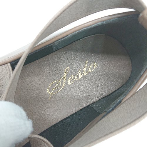 ◇ Sesta セスタ スクエアトゥ 無地 足首ストラップ クロス パンプス サイズ24.0 ブラウン レディース E