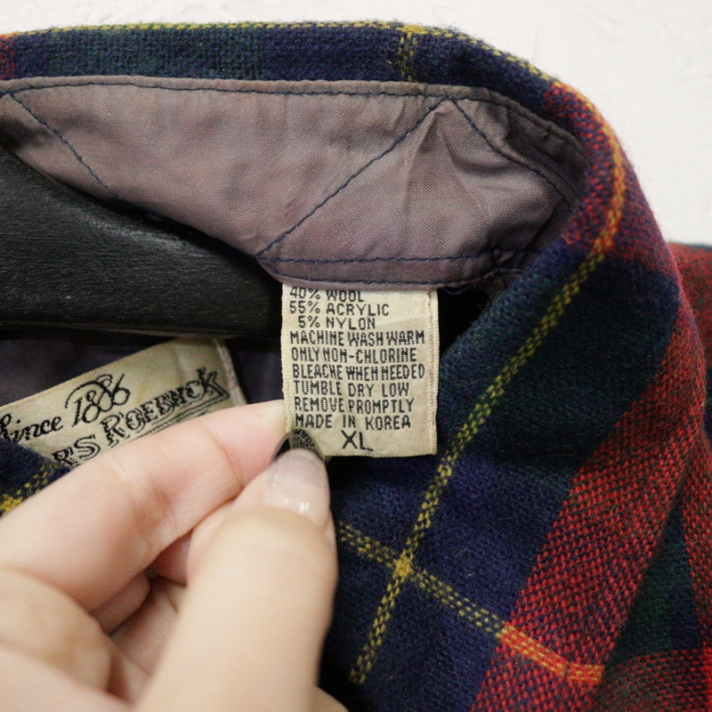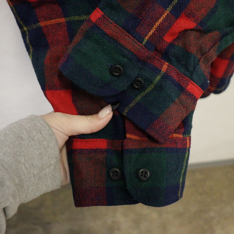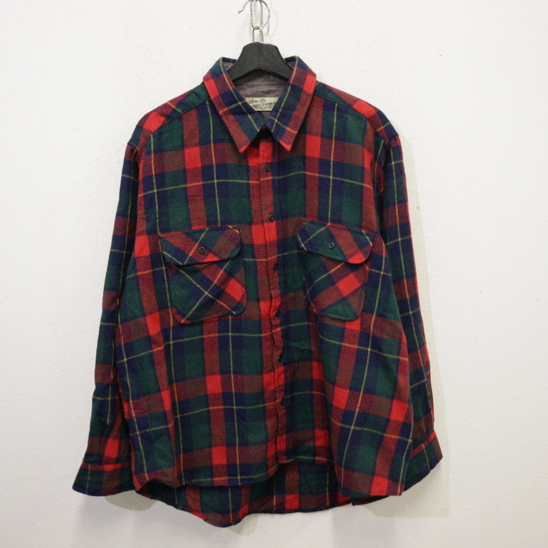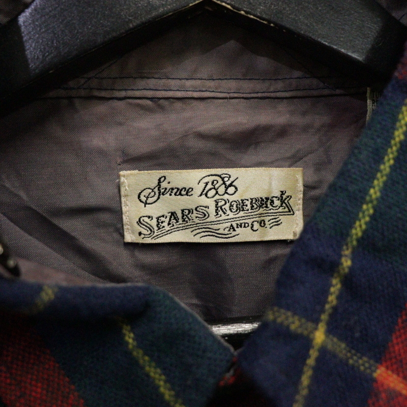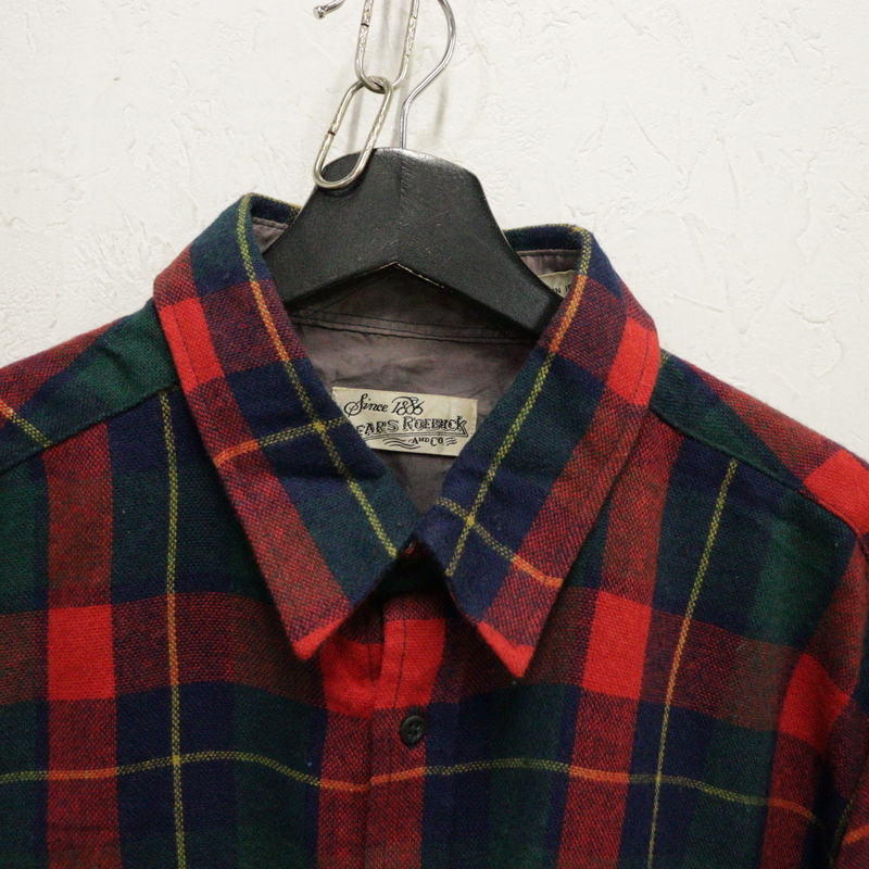 T247 80sビンテージ SEARSROEBUCK 長袖シャツ ウール チェック■1980年代製 表記XLサイズ 赤 レッド アメカジ ストリート 古着 古着卸 激安