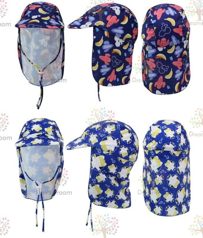 1スタ☆kids UPF50+ サンシェード スイムキャップ UVカット【13】 帽子 日焼け防止 日よけ 海水浴 公園 ツバ フラップ あご紐付き