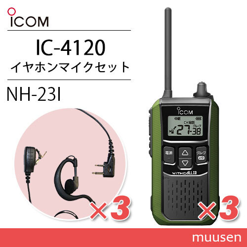 アイコム ICOM IC-4120G (×3) グリーン 特定小電力トランシーバー + NH-23I(F.R.C製) (×3) 無線機