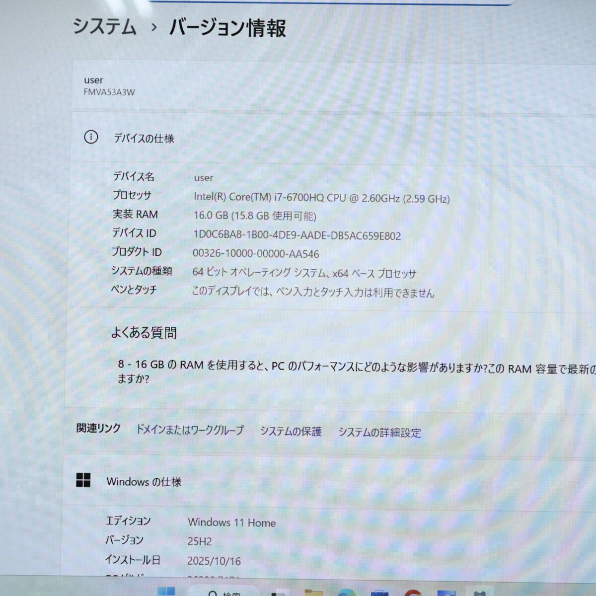 ★超美品 最上級6世代4コアi7!新品SSD512GB メモリ16GB★A53A Core i7-6700HQ Win11 MS Office2019 H&B ノートパソコン★P95069