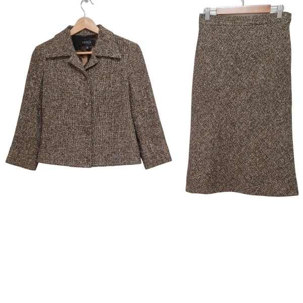 エポカ EPOCA スカートスーツ - ダークブラウン×黒×マルチ レディース ツイード/肩パッド レディーススーツ