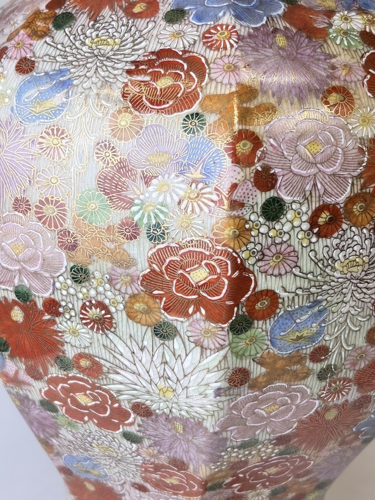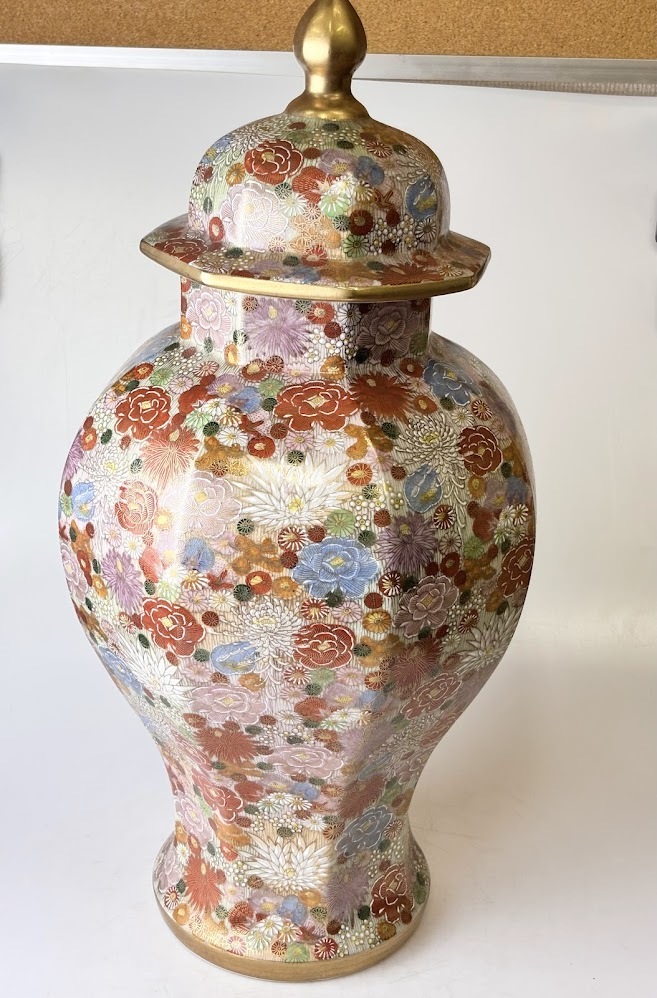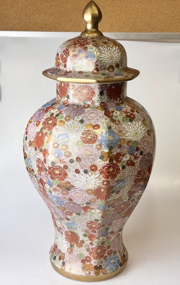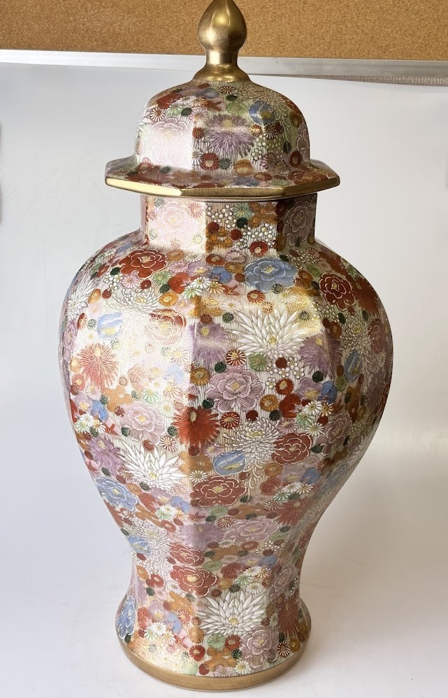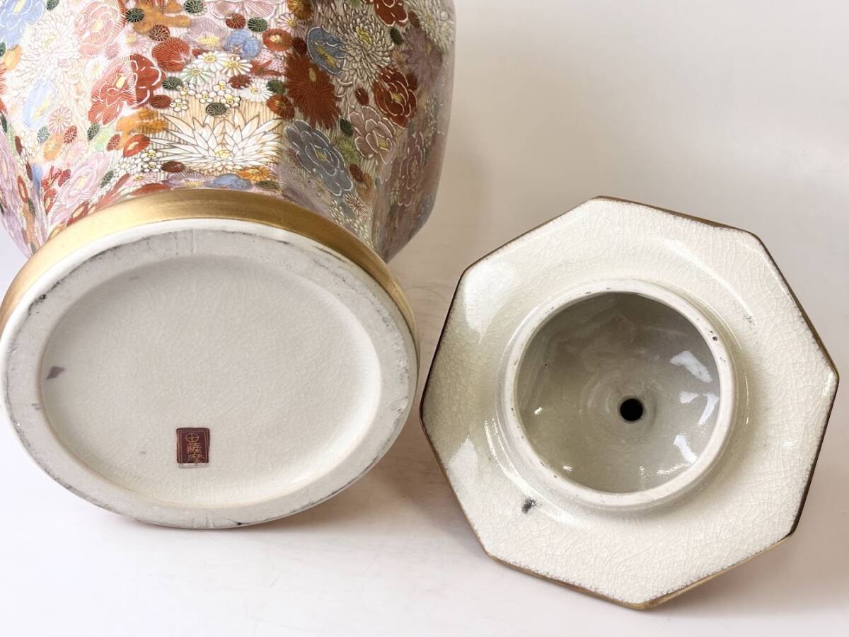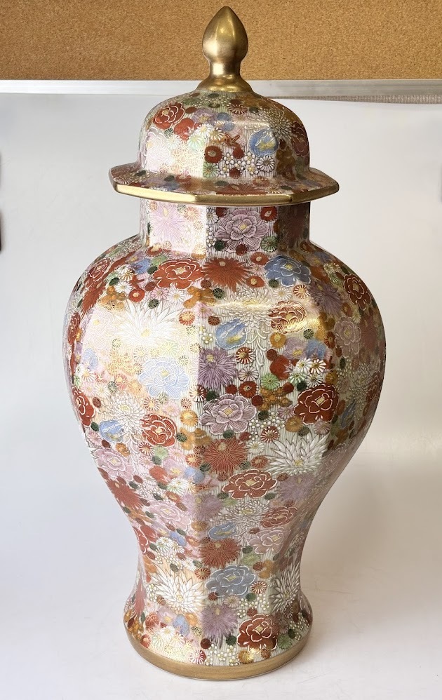 | ・商品名 | 薩摩焼 金襴手 色絵金彩 花詰文 大壺 沈香壺 丸十字紋 細密絵付 飾壺 蓋付壺 花瓶 |