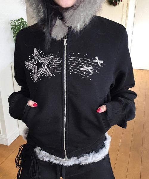 参考商品名:【 MEMECLE / メメクル 】ラメ ファー フードダブルジップパーカー
