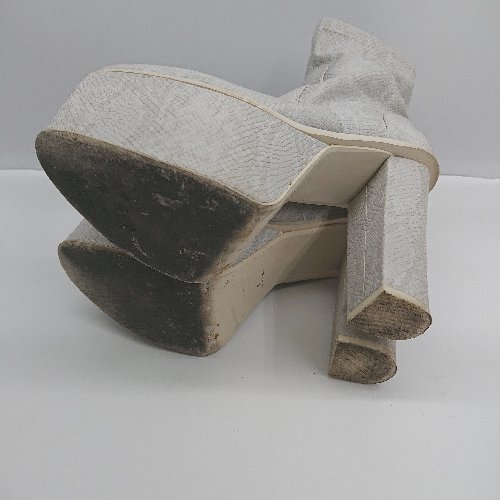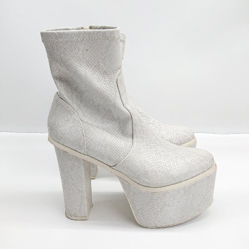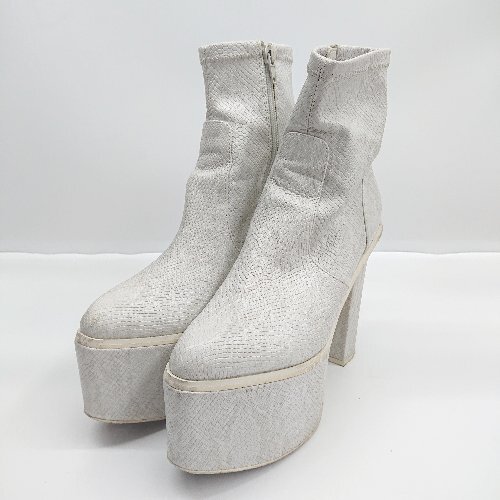 ■ ⊇ GYDA ジェイダ 蛇柄 ショートブーツ バルキーショートブーツ サイズS アイボリー レディース E