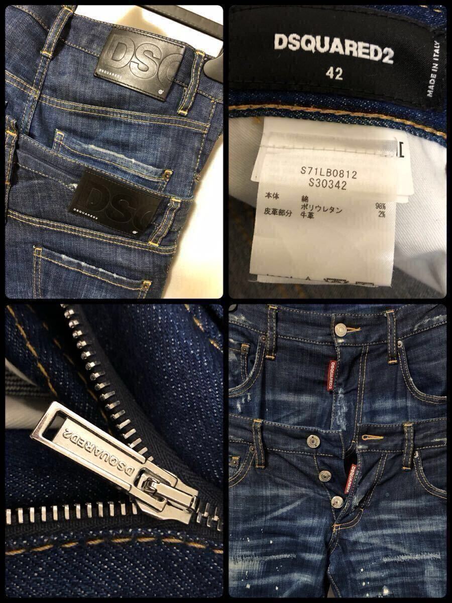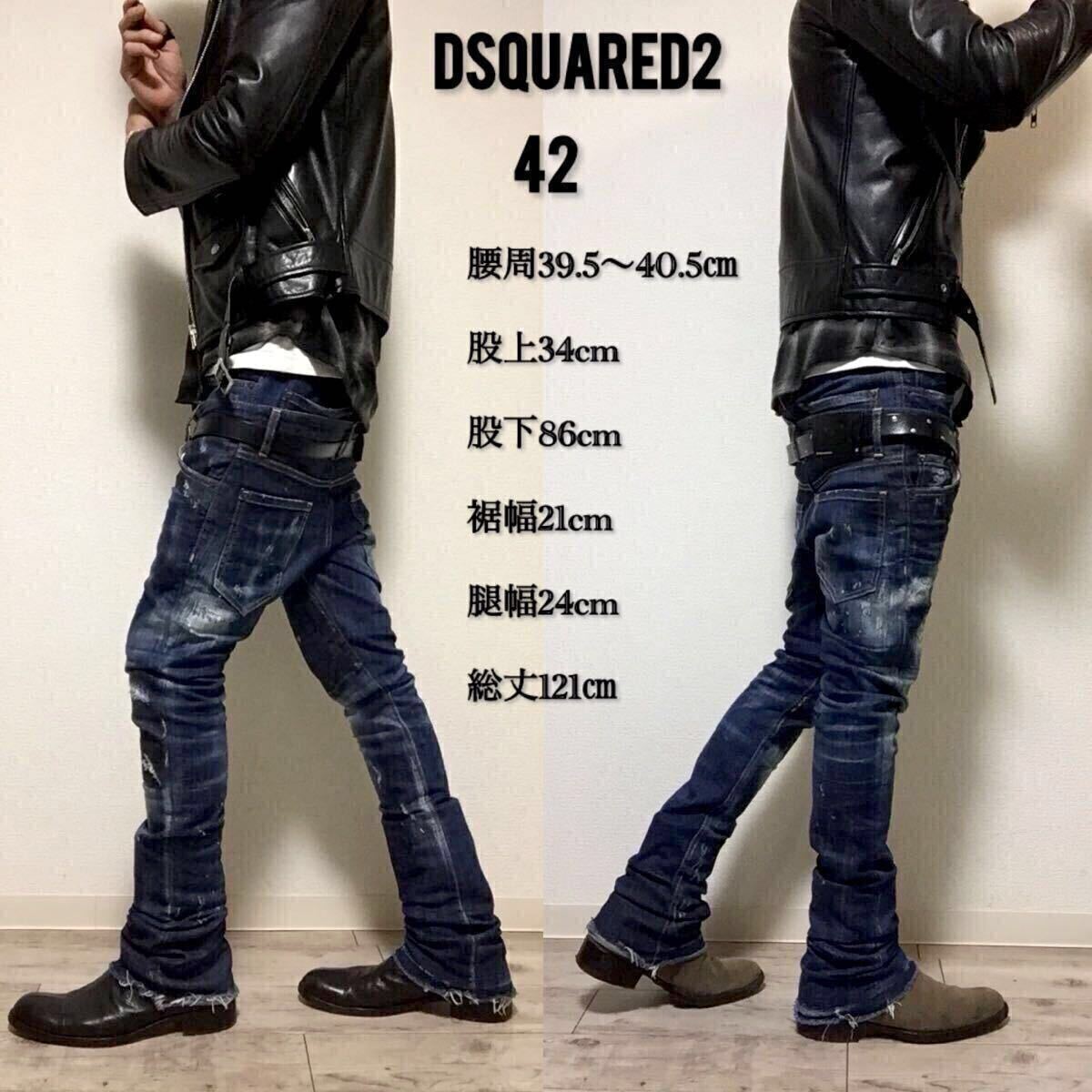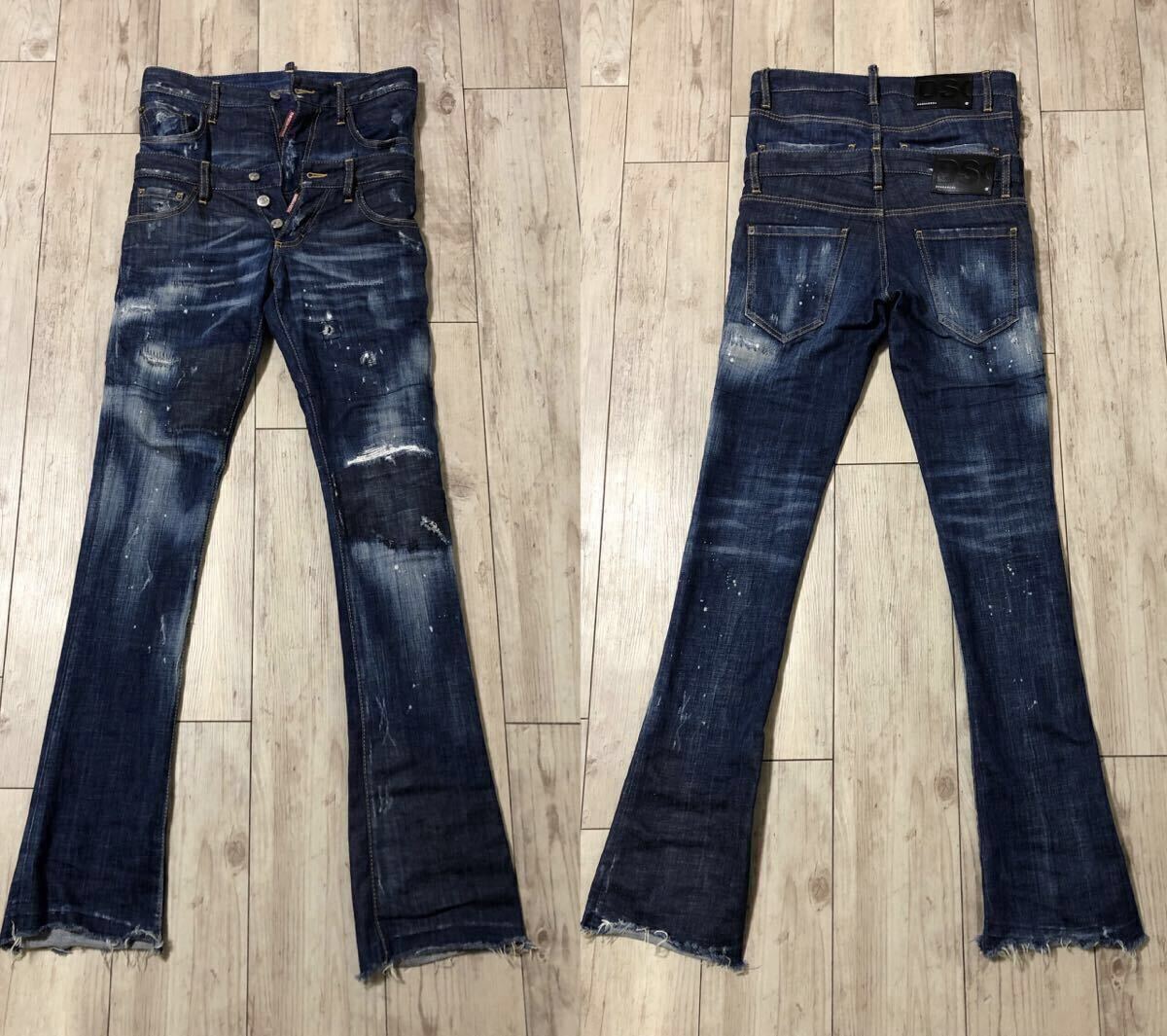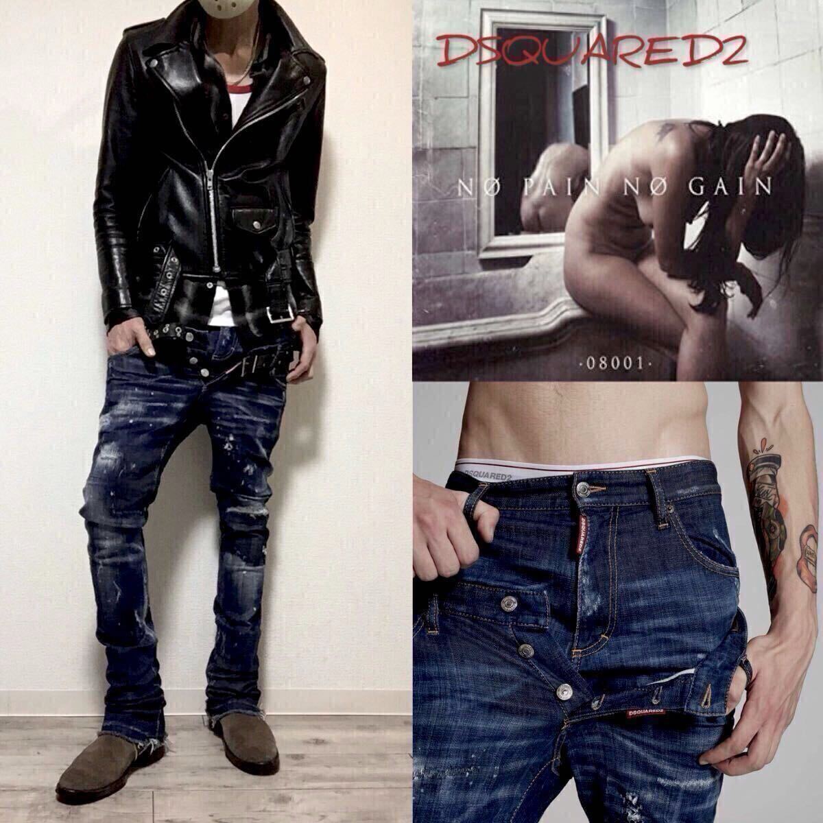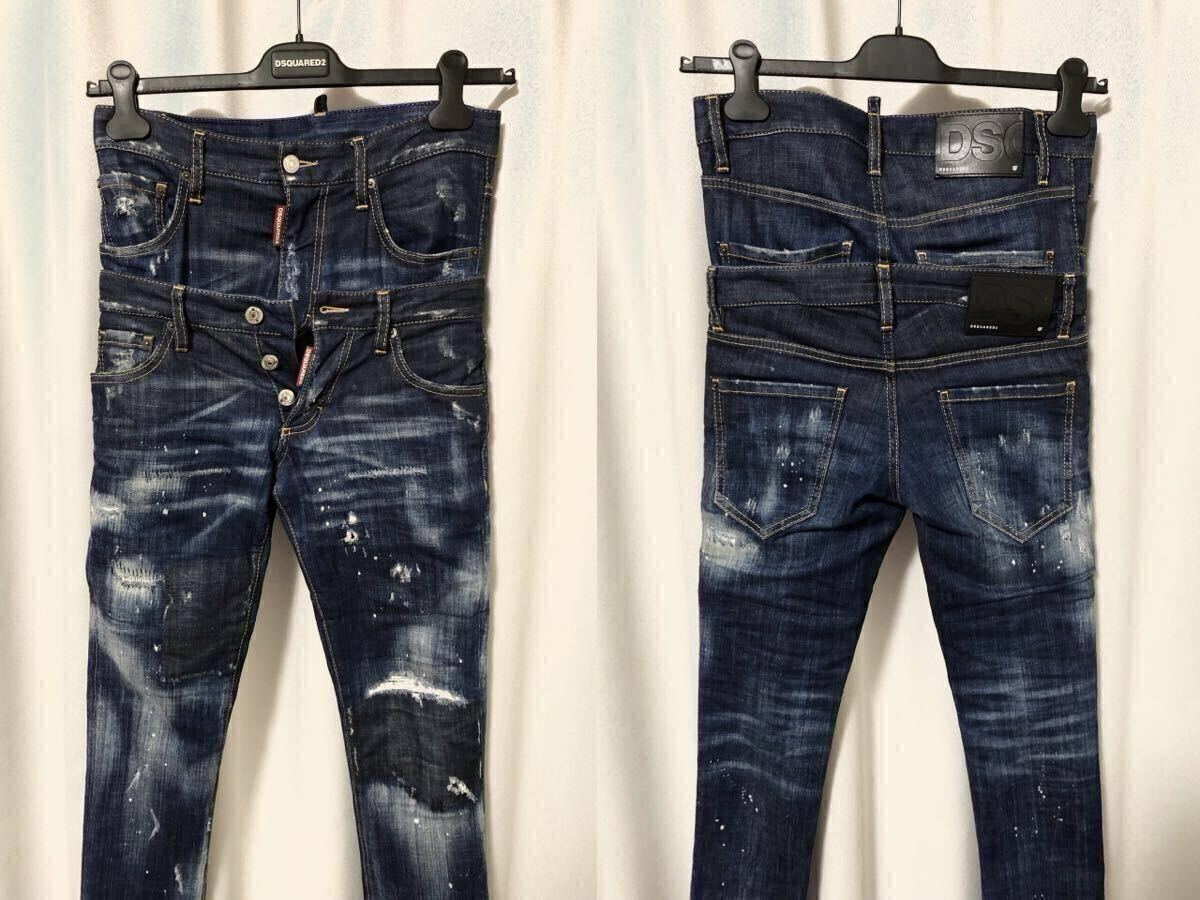 ハードウォッシュ、リペア、パッチワーク、軽いペンキなどDSQUARED2らしい加工が施されており着用時はウエストの位置を変える事で多彩なパターンが楽しめます。