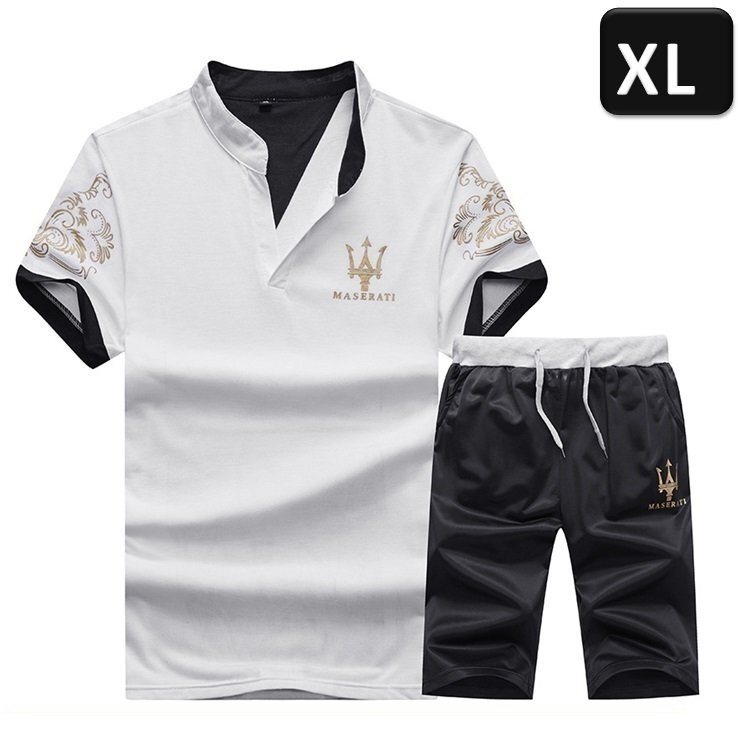 ☆大人気商品☆ジャージ 上下 セット 半袖 部屋着 ルームウェア スポーツウェア セットアップ ホワイト×ブラック XLサイズ 【241】
