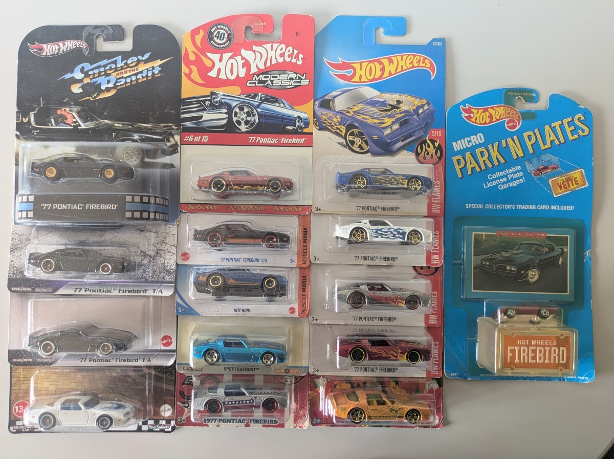 1/64 ホットウィール '77 PONTIAC FIREBIRD未開封新品14台+マイクロファイヤーバードの合計15台セットです。バラ売りはしません。購入後は段ボール保管していましたが、ブリスターに汚れ、折れ目、擦れ、破れ、破れ、日焼け等がある場合があります。特に折れやキズが酷い物をアップで撮りましたが、それ以外にもブリスターにキズ等はあります。写真でよく判断をして、完璧を求める方は入札しないでください。