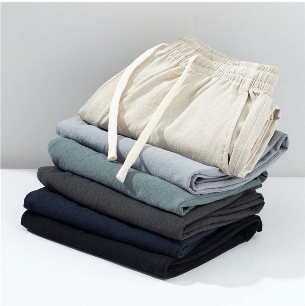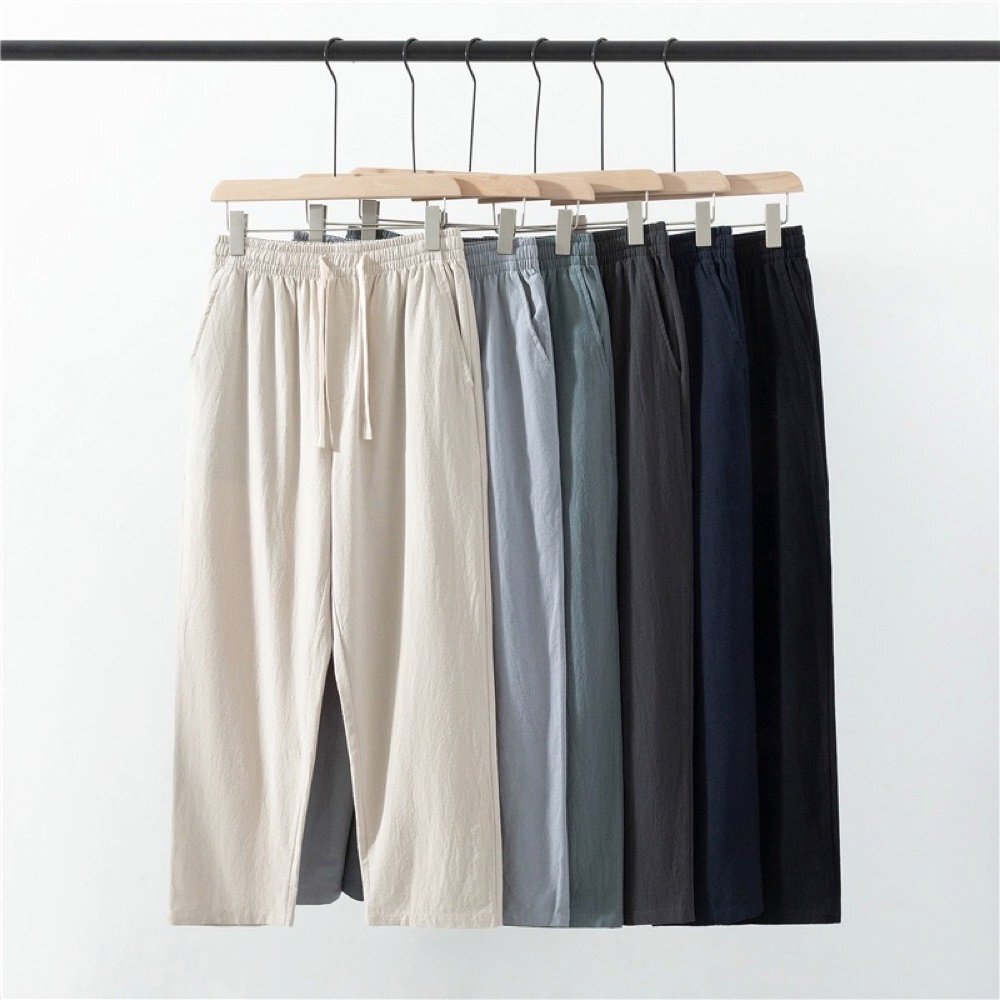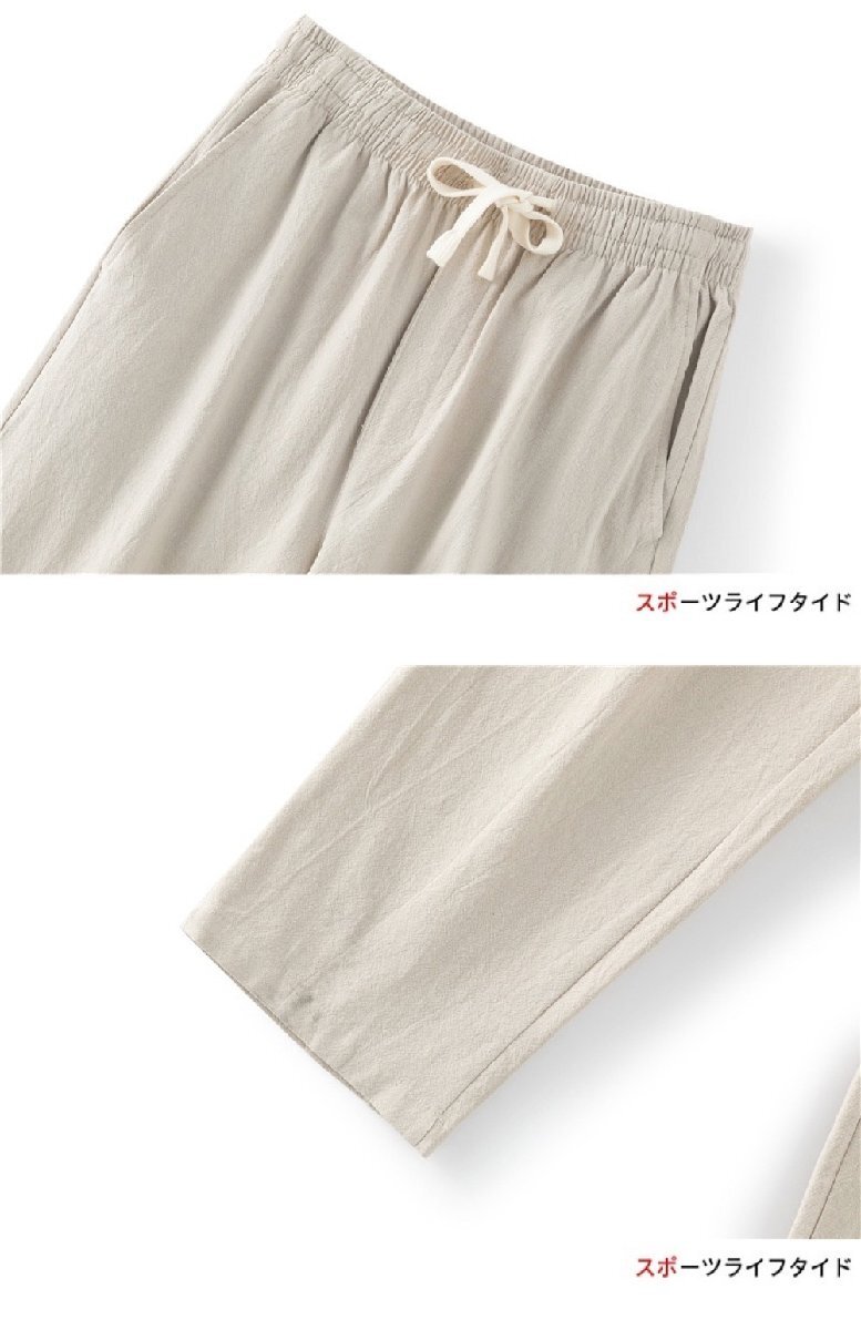 サルエルパンツ メンズ ワイドパンツ 涼しい イージーパンツ ジョガーパンツ 麻綿風ズボン 無地カジュアル ボトムス 9分丈 ライトグレー2XL