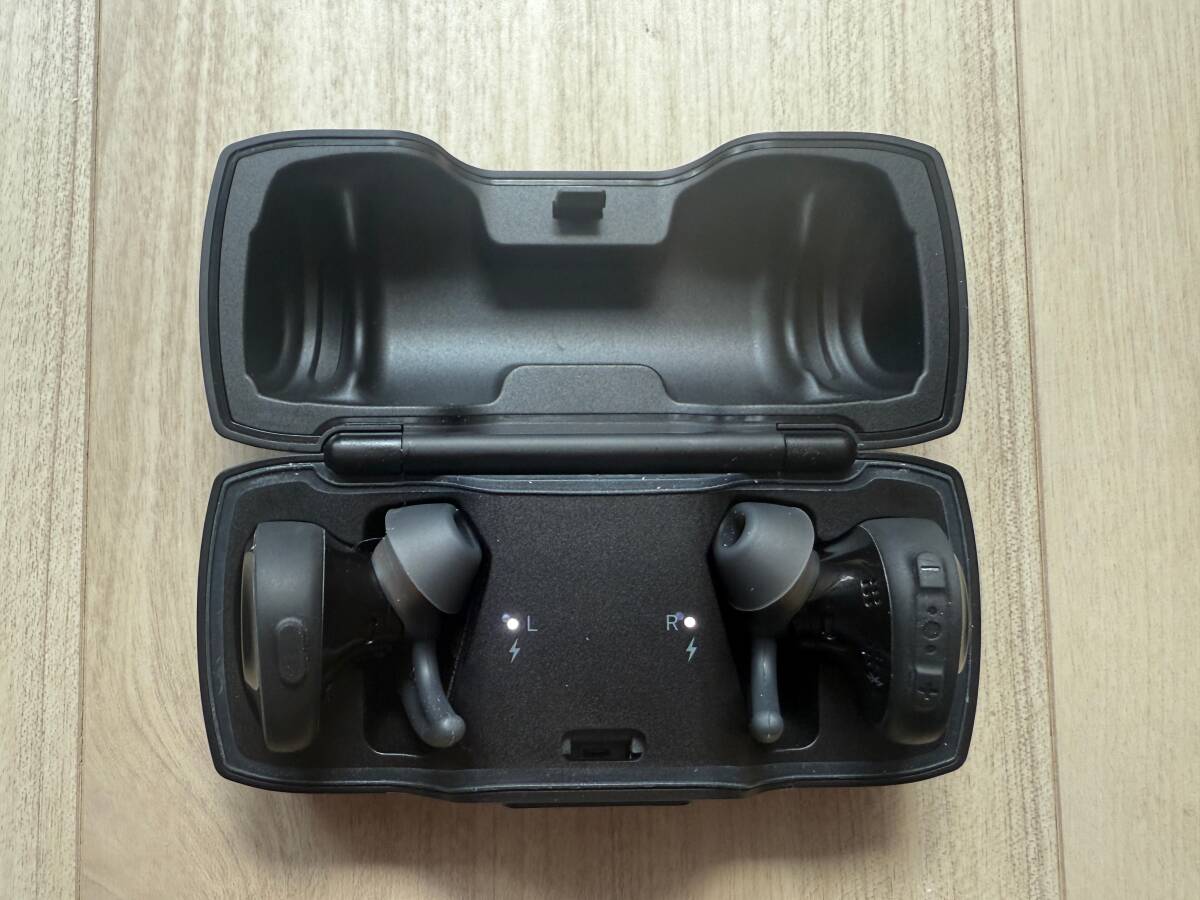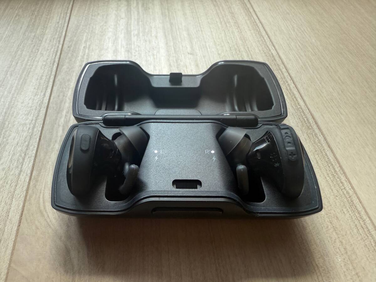 イヤホンが動作しない「BOSE Sound Sport Free」です。両方のイヤホンに内臓されているバッテリーが死んでいる状態です。