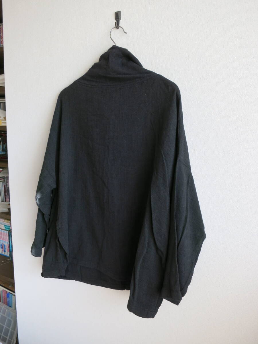 萠もゆるmoyuruモユルオフタートルプルオーバーワイドカットソーコットン100*アジアンエスニック墨黒