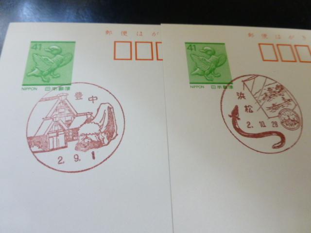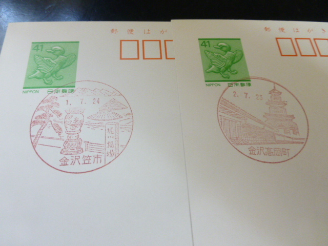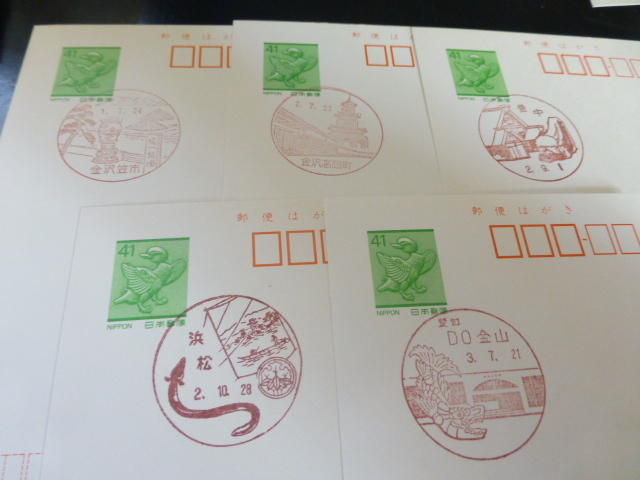 鳥獣はがき 初日風景印 5枚 金沢笠市ほか