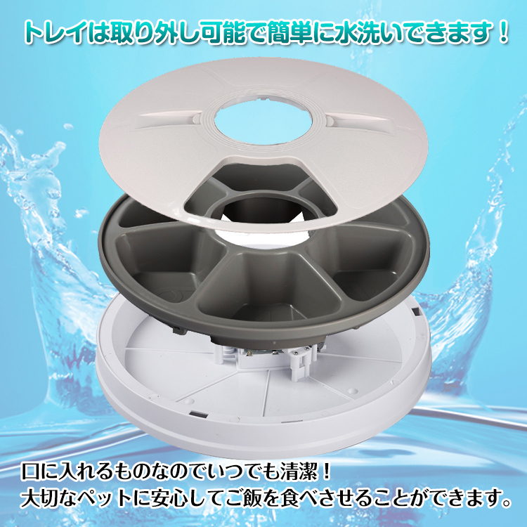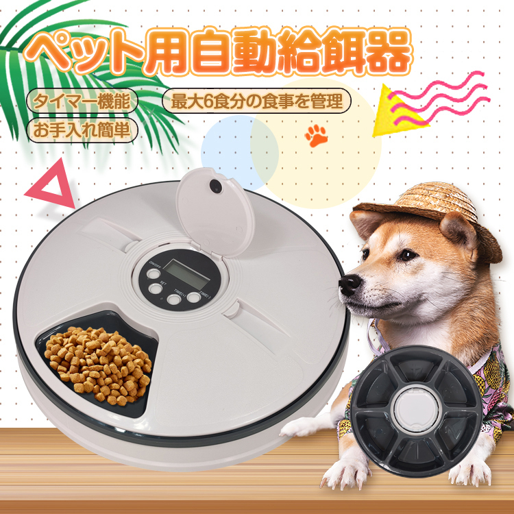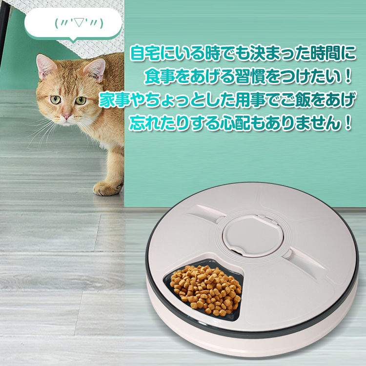 自給餌器 猫 犬 オート ペット フィーダー 6食分 おしゃれ ペット用品 ネコ イヌ タイマー 餌やり機 留守番 仕事 残業 出張 pt056