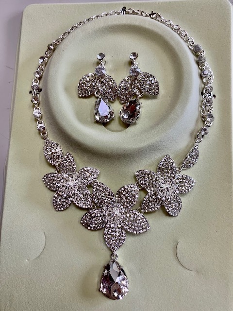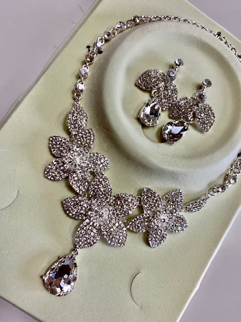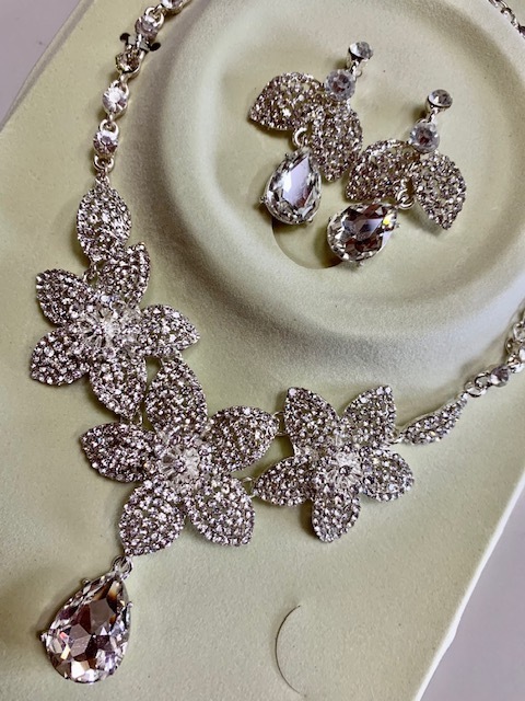 | ブライダルネックレス 大きめラインストーンが豪華 イヤリング付 ネックレス お花 | |||||