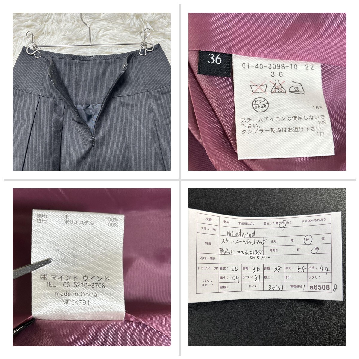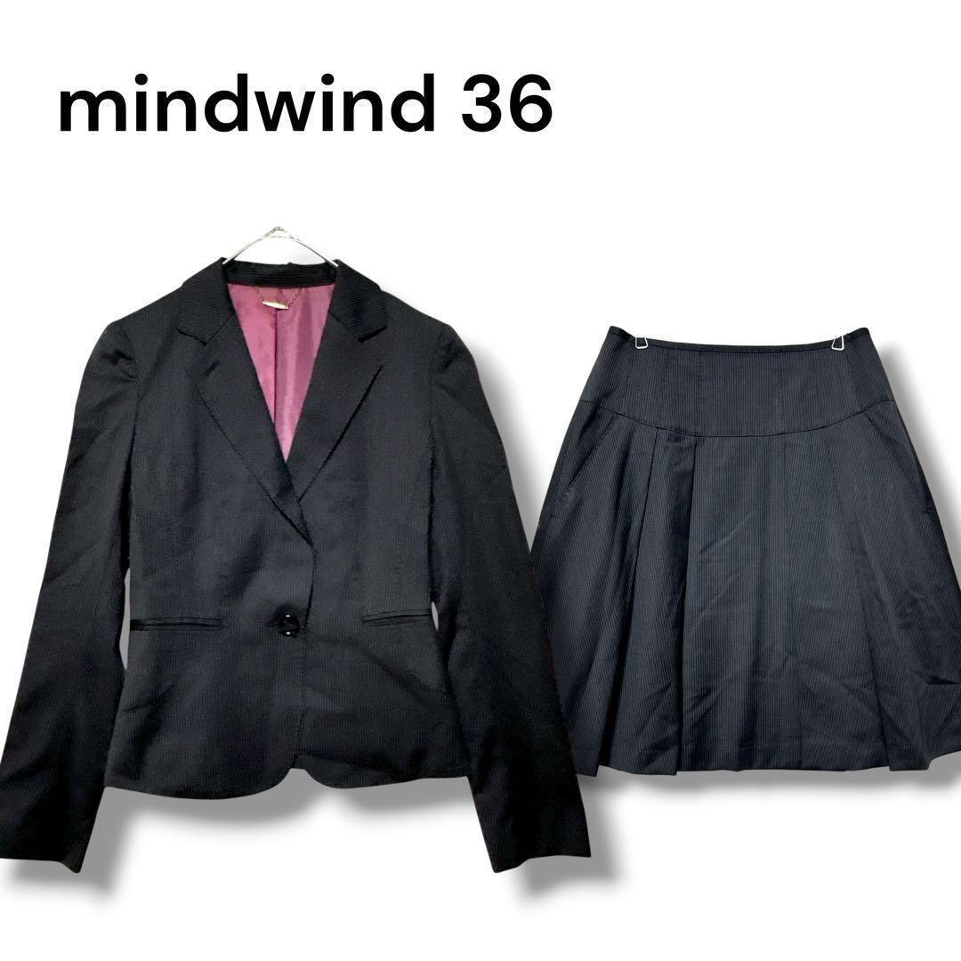 マインドウインド スカートスーツセットアップ 36 肩パッド ひざ丈 濃灰色 C36A1F