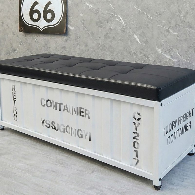 ベンチ コンテナ 収納ベンチ 収納ボックス おしゃれ 蓋付き オットマン チェア レトロ アメリカン雑貨 ヴィンテージ 椅子 収納 BZ-12WH