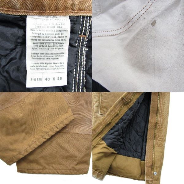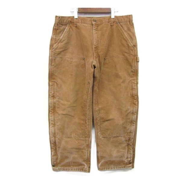 サイズ W40 L28 carhartt ダック地 パンツ ワーク ペインター ブラウン ダブルニー キルティング カーハート 古着 ビンテージ 5D0602