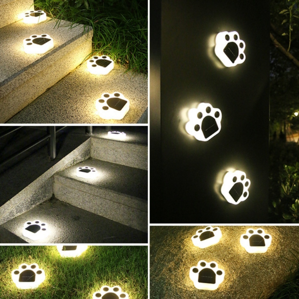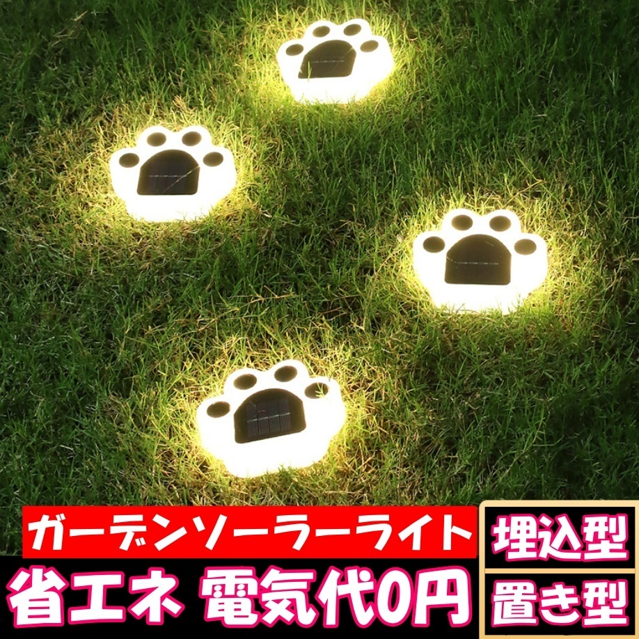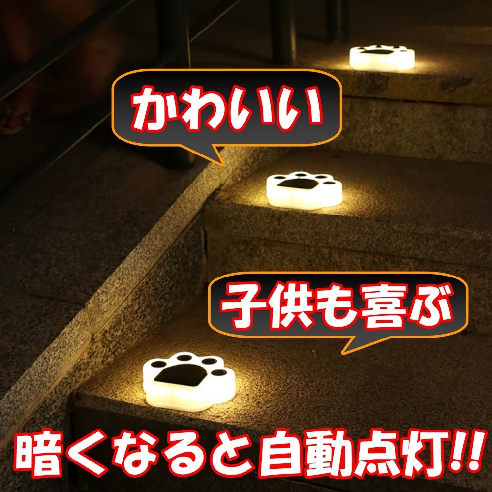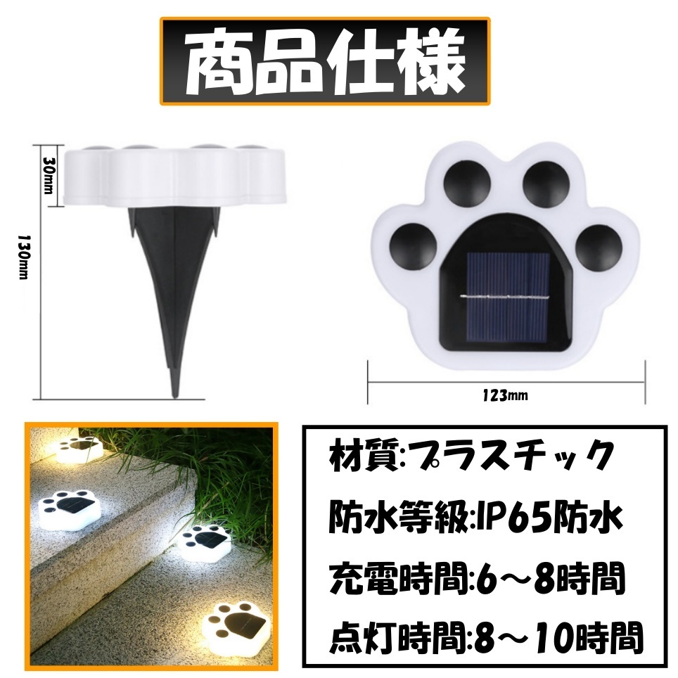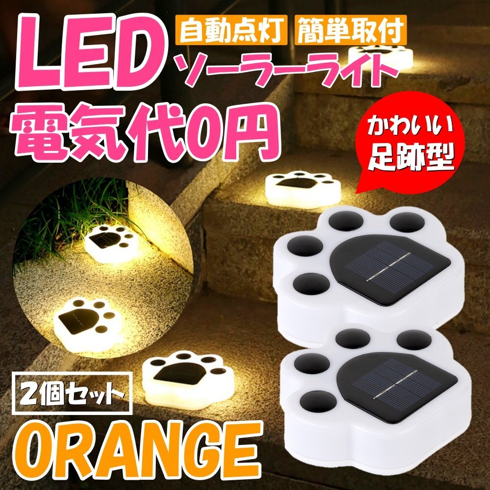 オレンジ 電球色 猫 犬 足跡 ガーデン LED ソーラー ライト 明るさセンサー 太陽光 庭 ウッドデッキ 照明 テラス 庭 ペット 2個セット