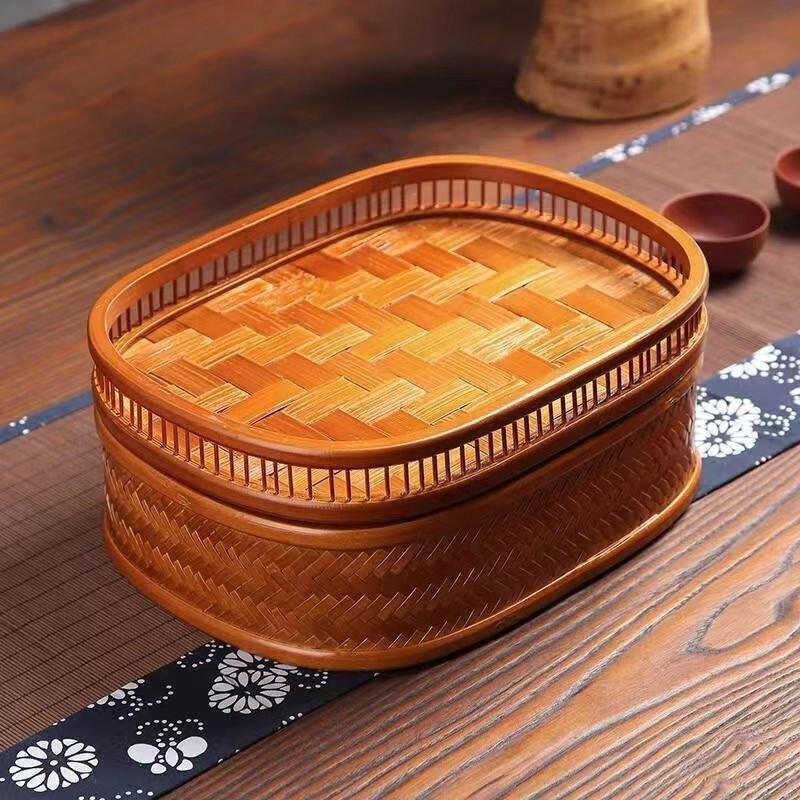 手作り 竹工芸 提籃籠 收納盒 茶道具籠 茶具 竹細工 收納 多機能茶具 工芸品