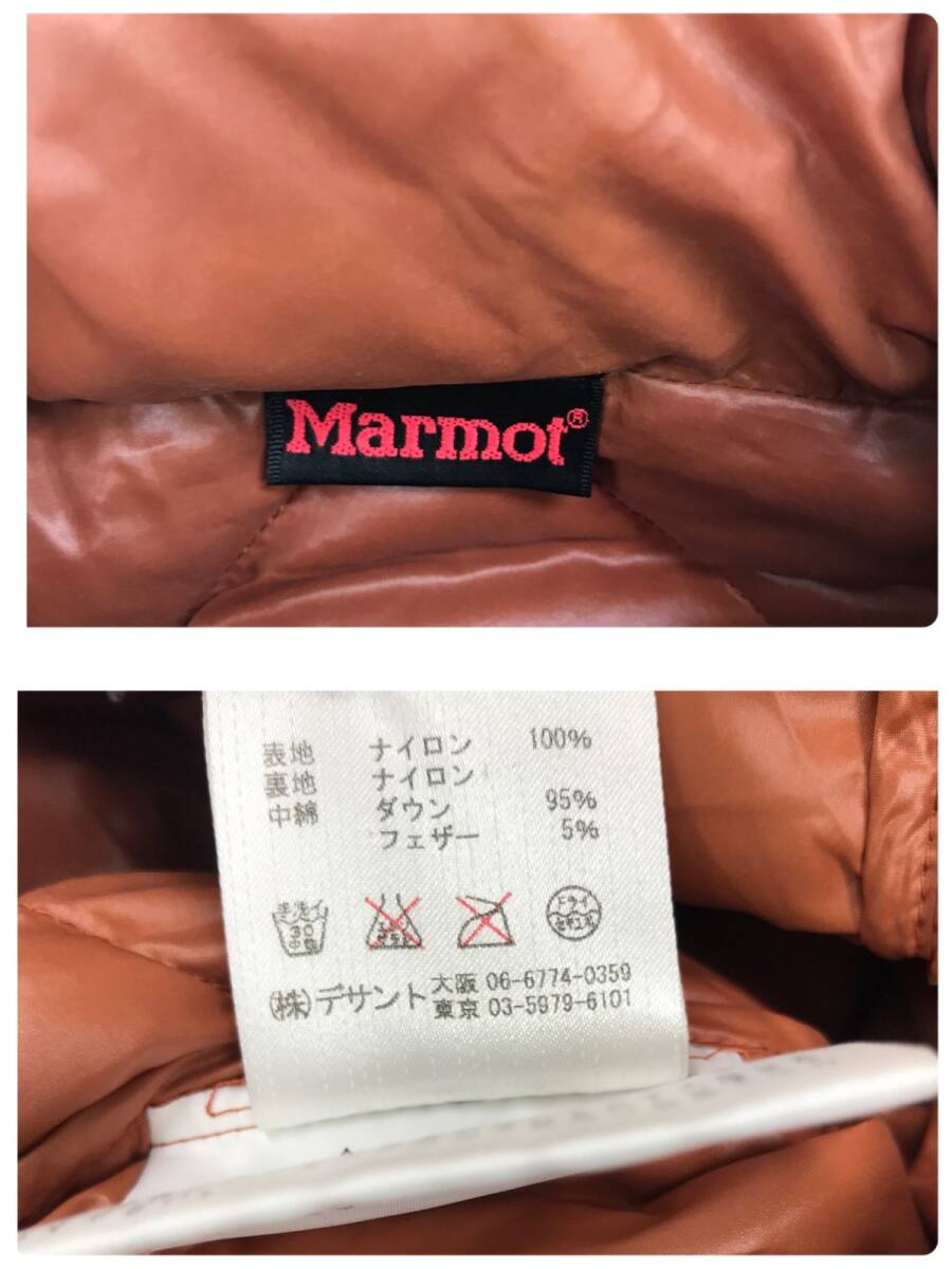 2D1166-G◆ Marmot マーモット ダウンジャケット キルティング ポケットスリーブ 軽量 ハイネック 無地 ジップ ◆ sizeM ブラウン ナイロン