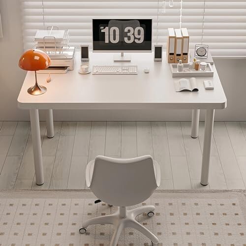 Rshtong デスク パソコンデスク 勉強机 机 幅100cm×奥行50cm 天板厚さ2.5cm PCデスク ゲーミングデスク desk 子 在宅ワーク リモートワーク用 おしゃれ シンプル 化粧台 作業机 組立簡単 (白い, 幅100cm)