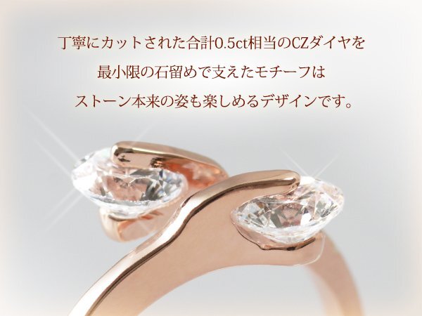 11号 / 新品 指輪 K18GP 2石 シンプル リング レディース 18金 ピンクゴールド ダイヤ CZ おしゃれ プレゼント 20代 30代 40代 50代 女性