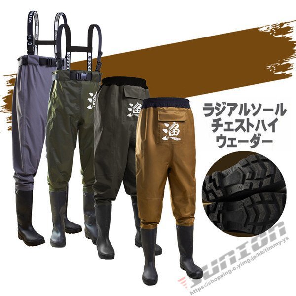 ウェーダー 胴長靴 チェストハイウェーダー 一体型 厚手 水陸両用スーツ 釣り用スーツ 渓流釣り  防水透湿 アウトドア 清掃