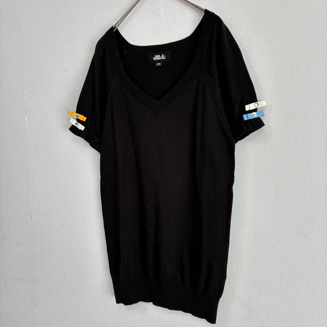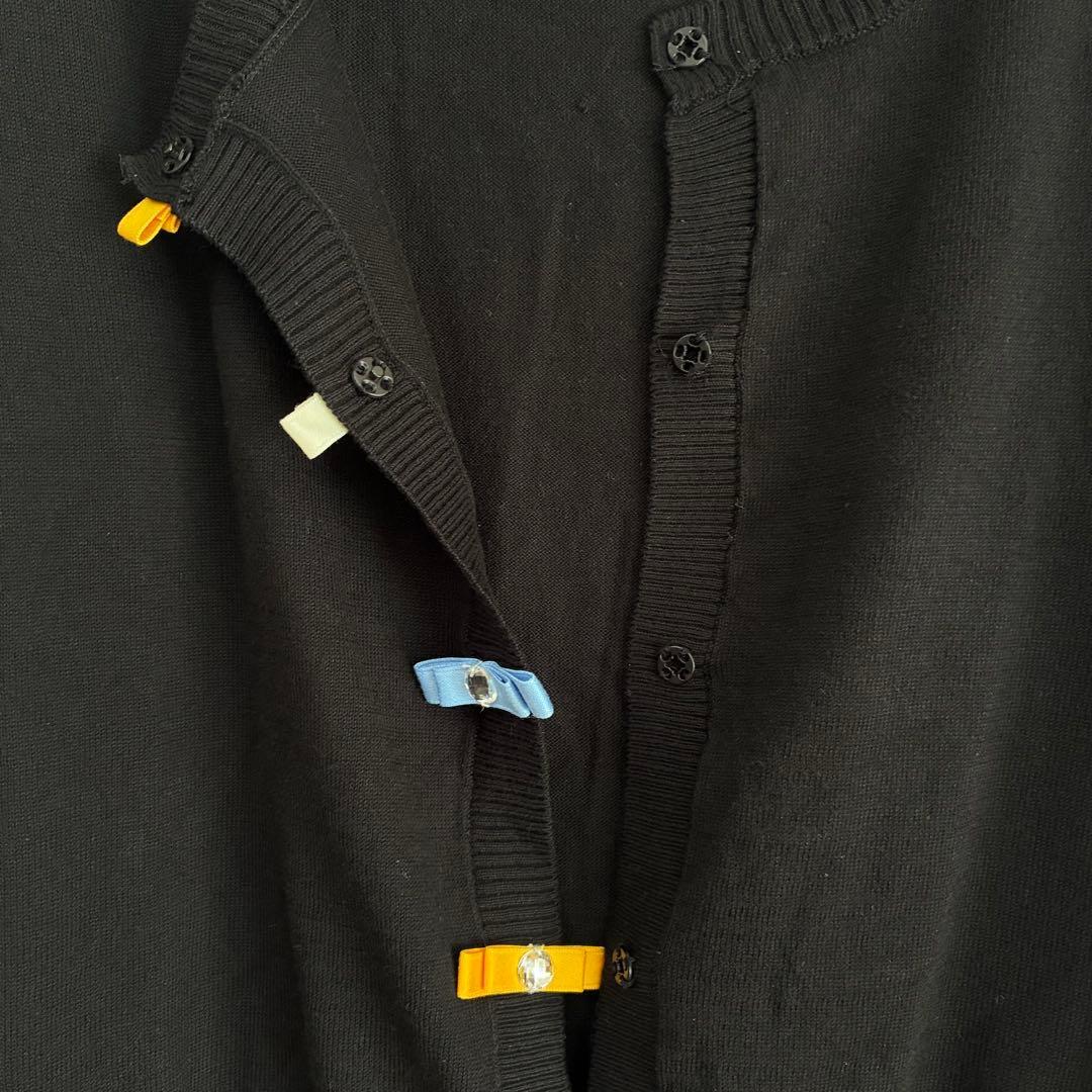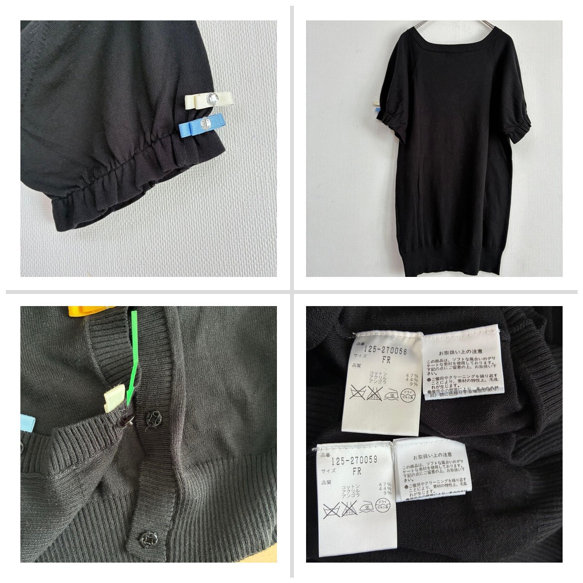 黒 ブラック カーディガン アンサンブル 半袖ニット アンゴラ混 薄手 リボン ビジュー 上品 重ね着 レイヤード クリスマス イベント デート 新年会 忘年会