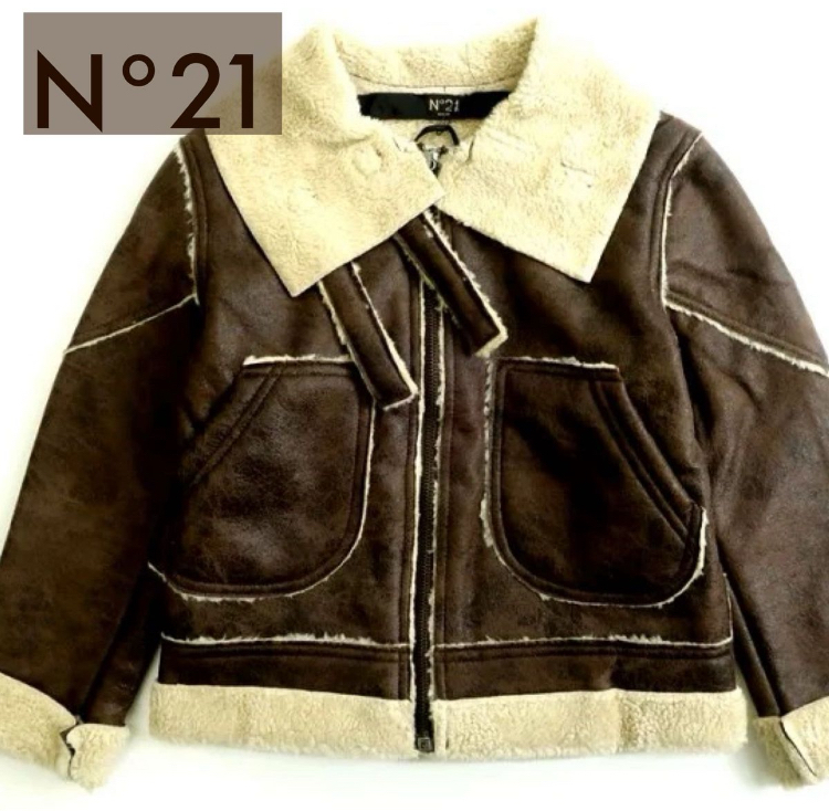 N°21 ヌメロ ヴェントゥーノ イタリア製 フェイクレザー ボア B-3 ジャケット ブルゾン キッズ