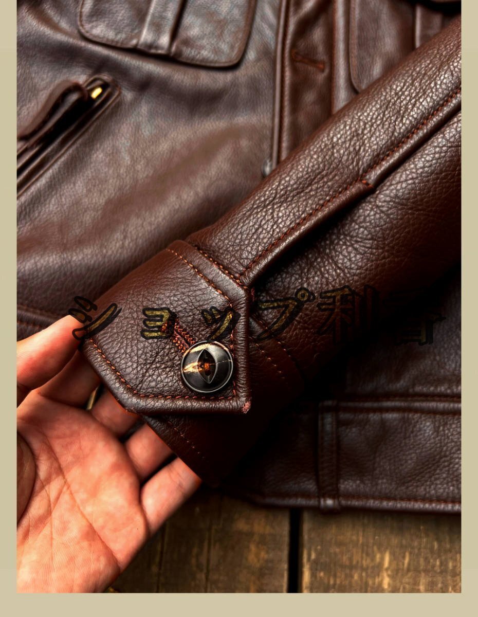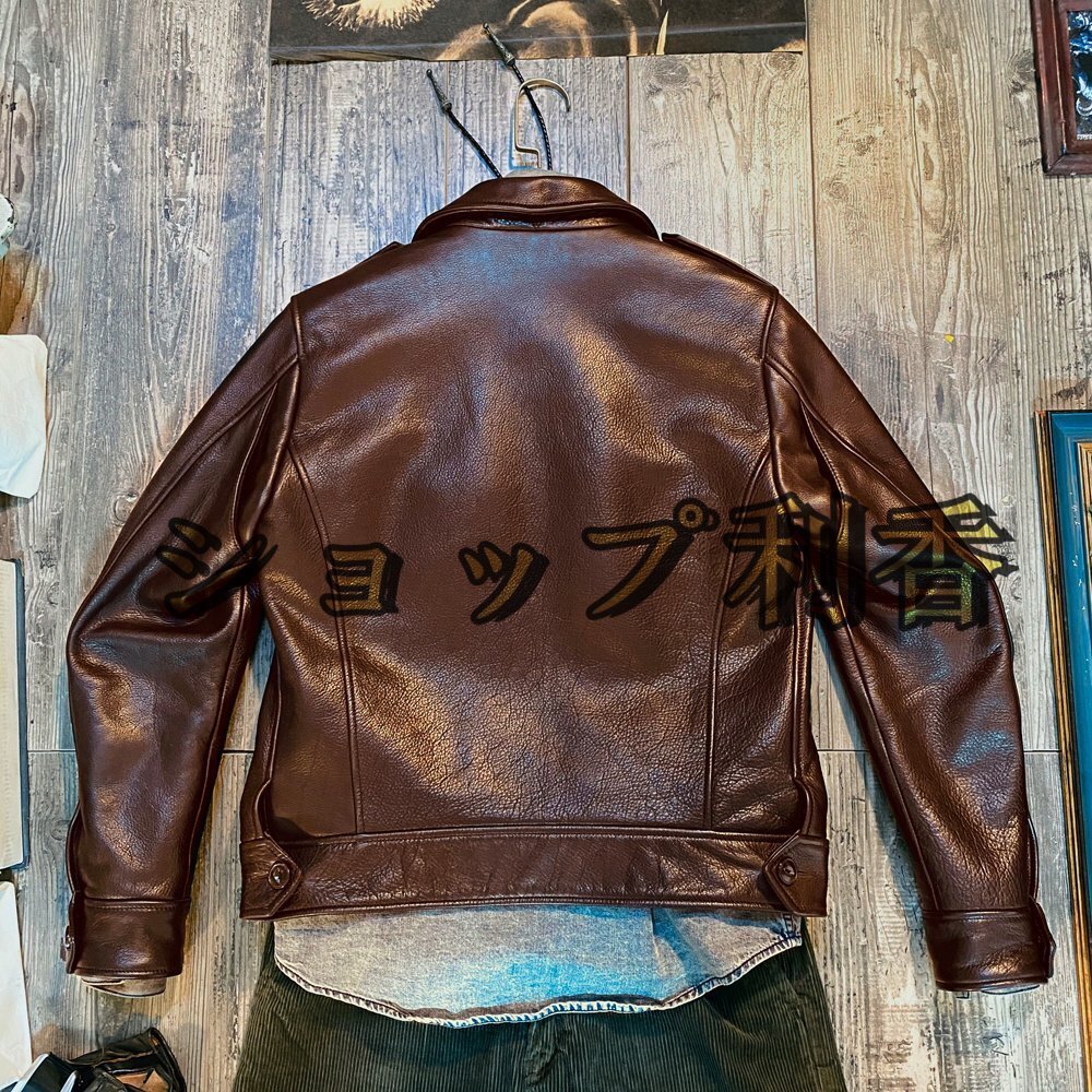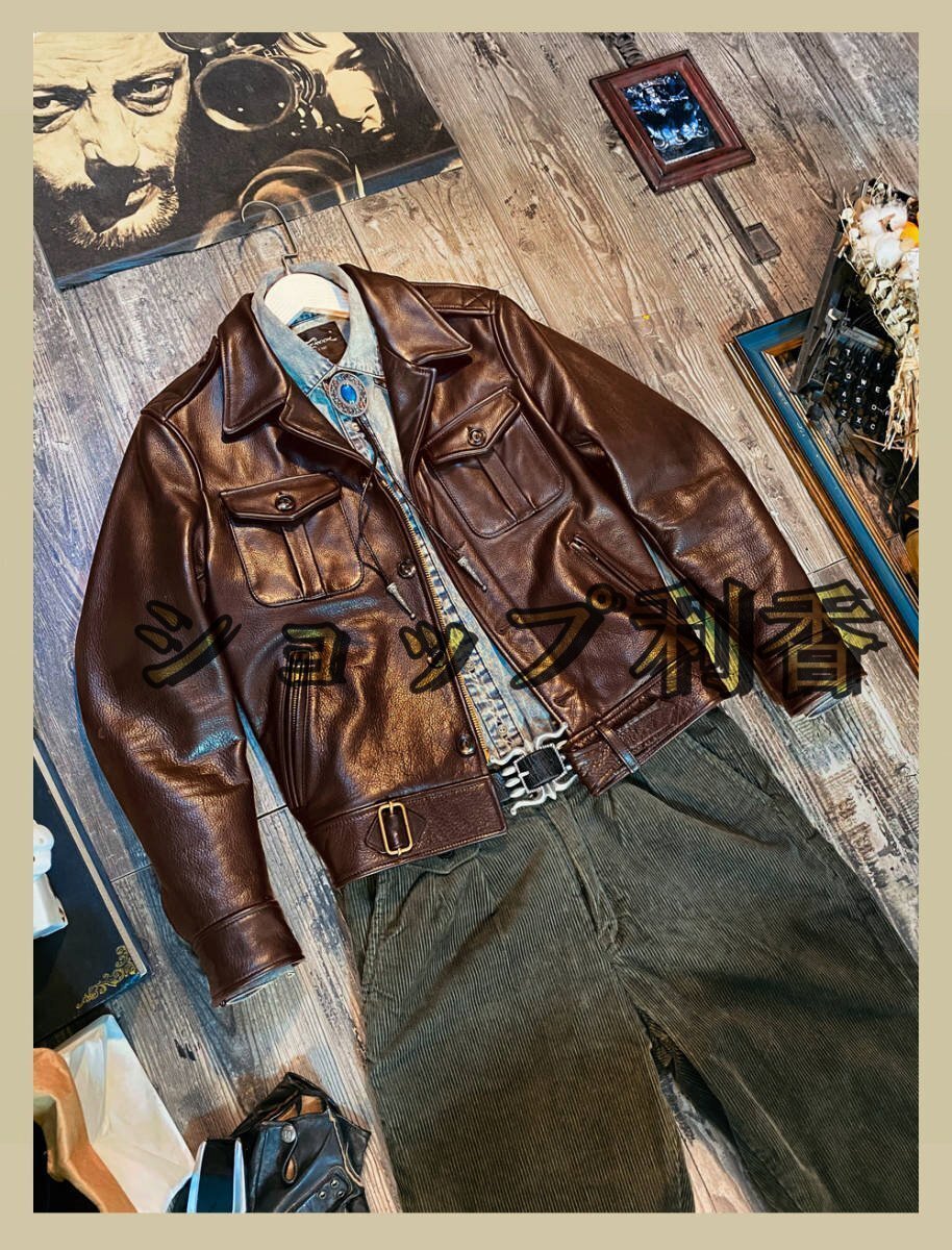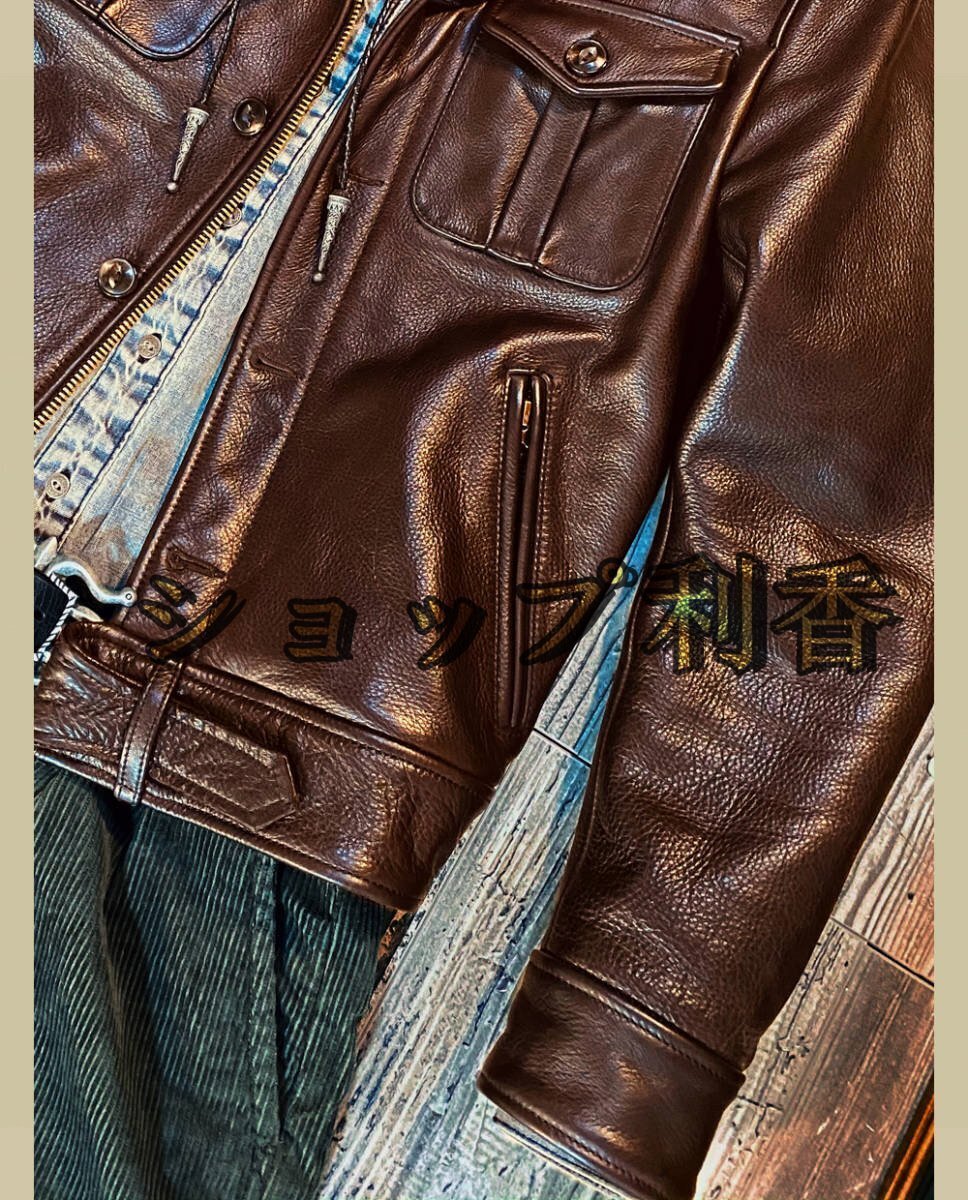 商品説明 採寸は下記通りです、ご参考ください。サイズ:素材 :カウレザー 裏地:コットン サイズ:S 肩幅:43.5㎝ 身幅:50cm 袖丈:61cm 着丈:56.5cmM 肩幅:44.8㎝ 身幅:52cm 袖丈:62cm 着丈:57.5cmL 肩幅:46.1㎝ 身幅:54cm 袖丈:63cm 着丈:59cmXL 肩幅