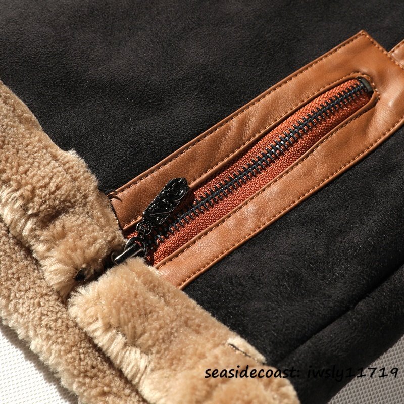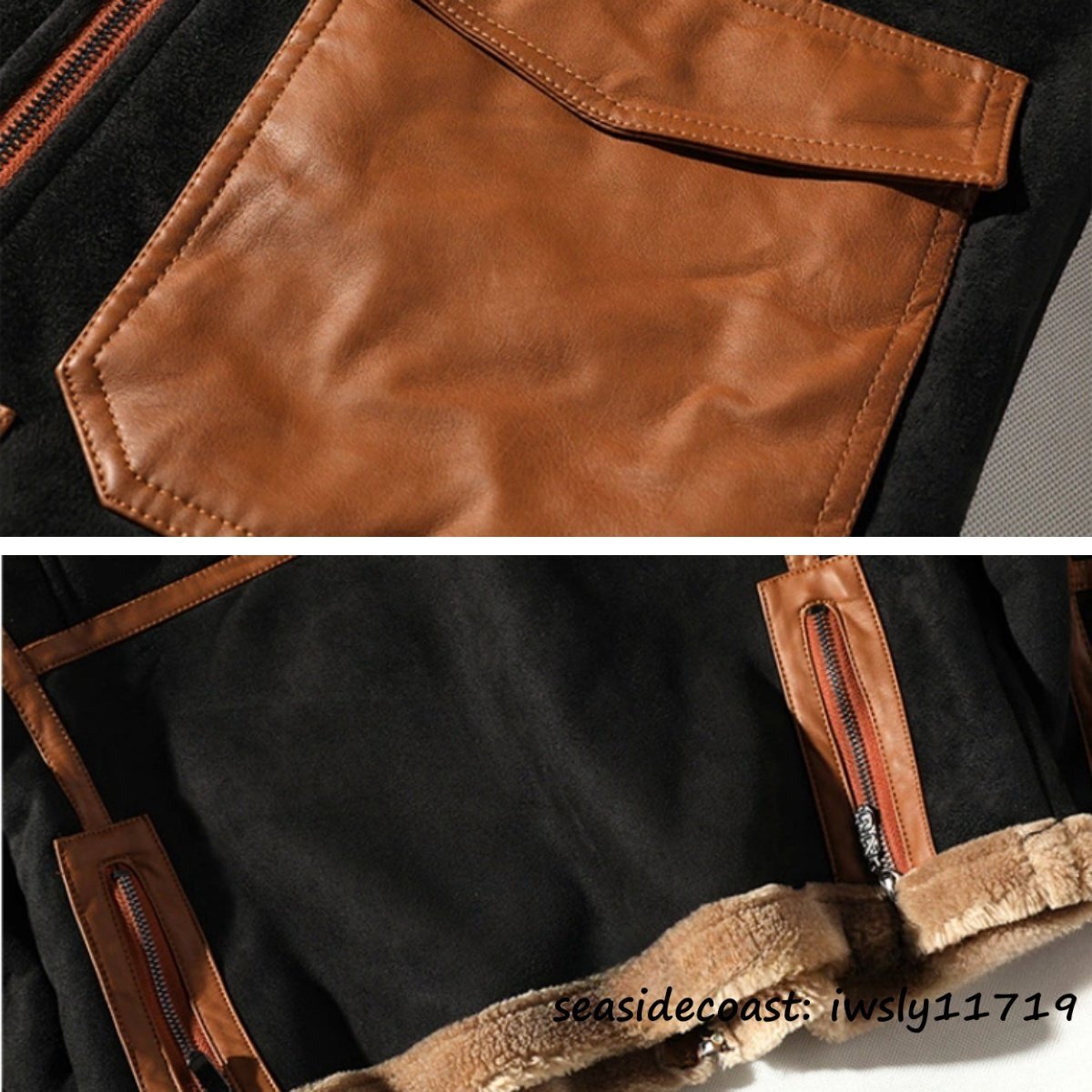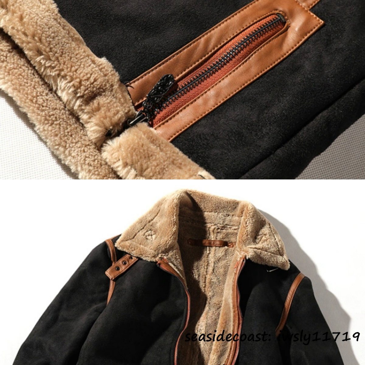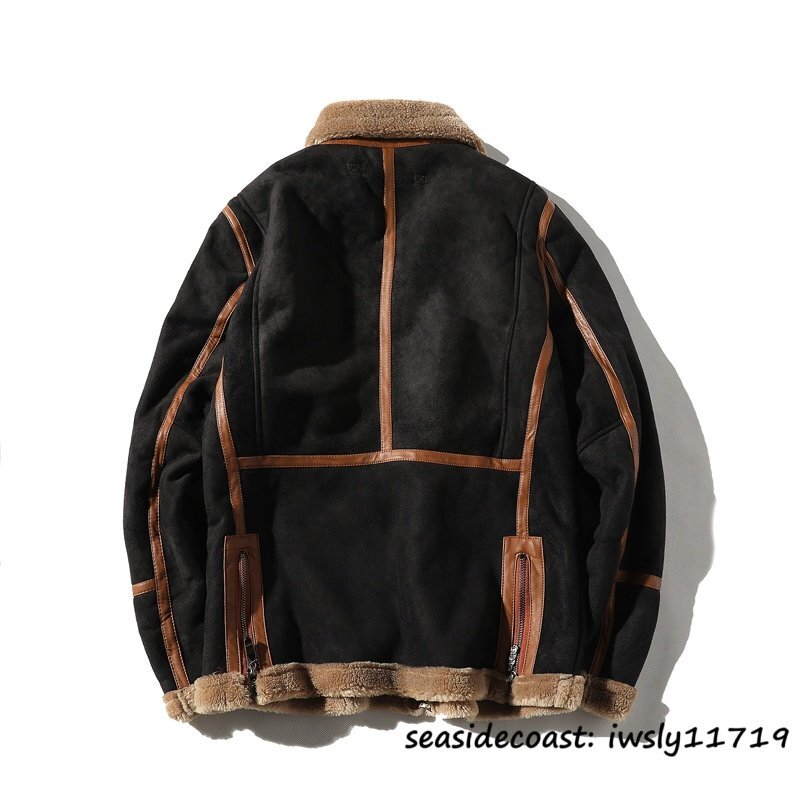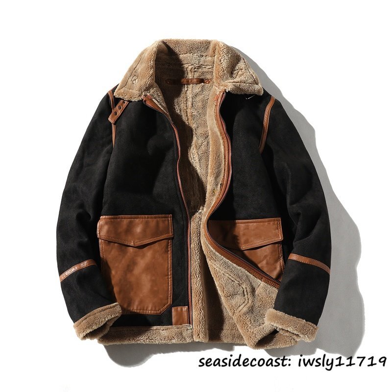 定価15万超◆入手困難 最高級 ムートンコート ブルゾン メンズ 超防寒 厚手 ファーコート ライトジャケット 配色 切替 新品 ライダース XL