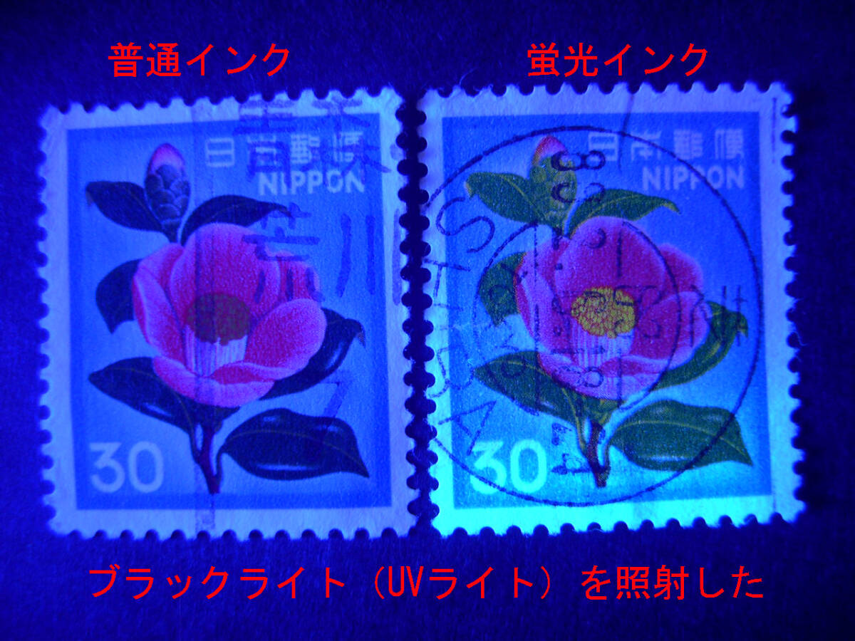 W238 日本普通切手 ツバキ 普通インク&発光インク 使用済み