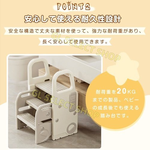• 【安心して使える耐久性設計】安全な構造で丈夫な素材を使って、強力な耐荷重があり、長く安心して使用できます。耐荷重を20KGまでの製品、ベビーの成長後でも使える踏み台です。