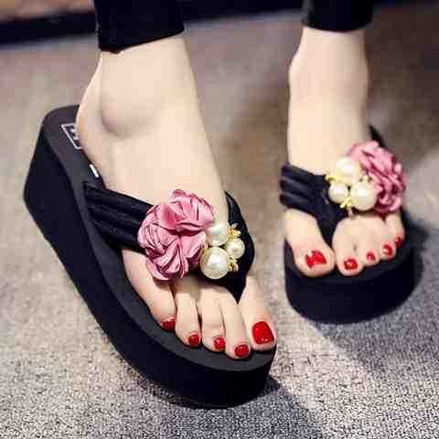 かわいい花柄の飾りが夏にピッタリです、海やプールに出かけた時にオススメ、熱い砂浜やプールサイドなどを歩く時の必需品です。