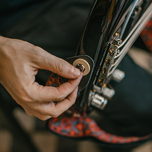 アーニーボールのラバー・ストラップ・ブロックを使用すると、楽器本体とストラップをしっかりと固定できます。