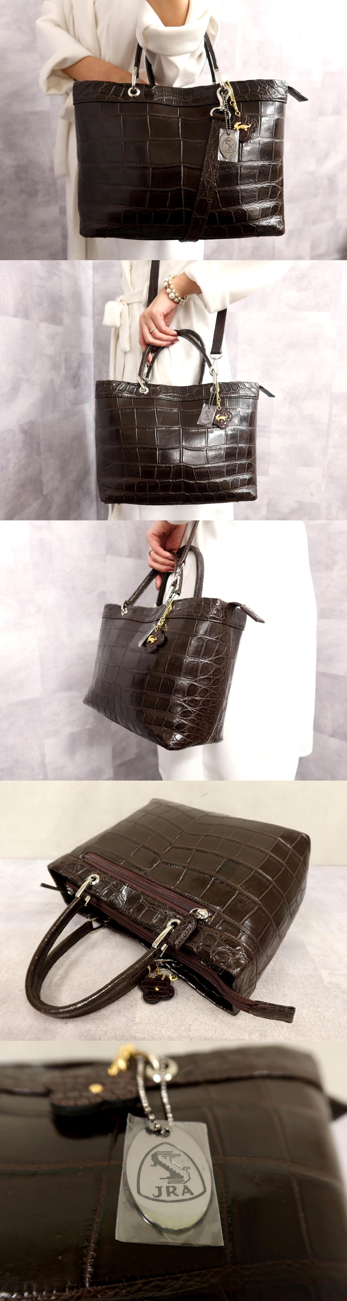 ●超美品●EAGLE●JRA認定●クロコダイル 本 ワニ 革●2way ハンド バッグ●ダークブラウン●シルバー金具●腕掛け●B5 書類 収納●Js63055