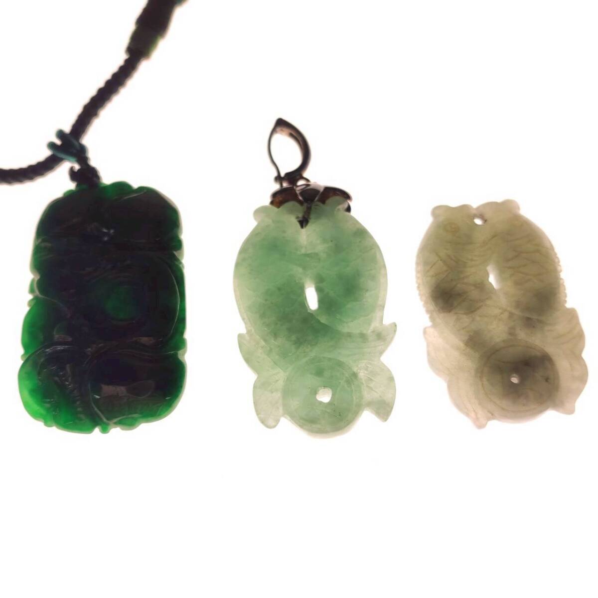 商品:1円~【3点】ヒスイ 翡翠 ペンダントトップ まとめ売り アクセサリー 総重量約52.92g 装身具 宝石 色石 ジュエリー カラーストーン K102367