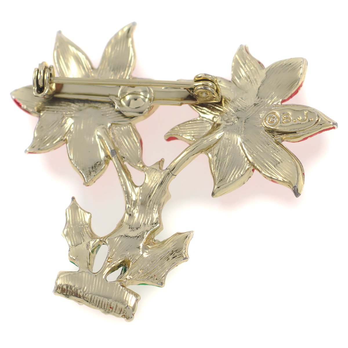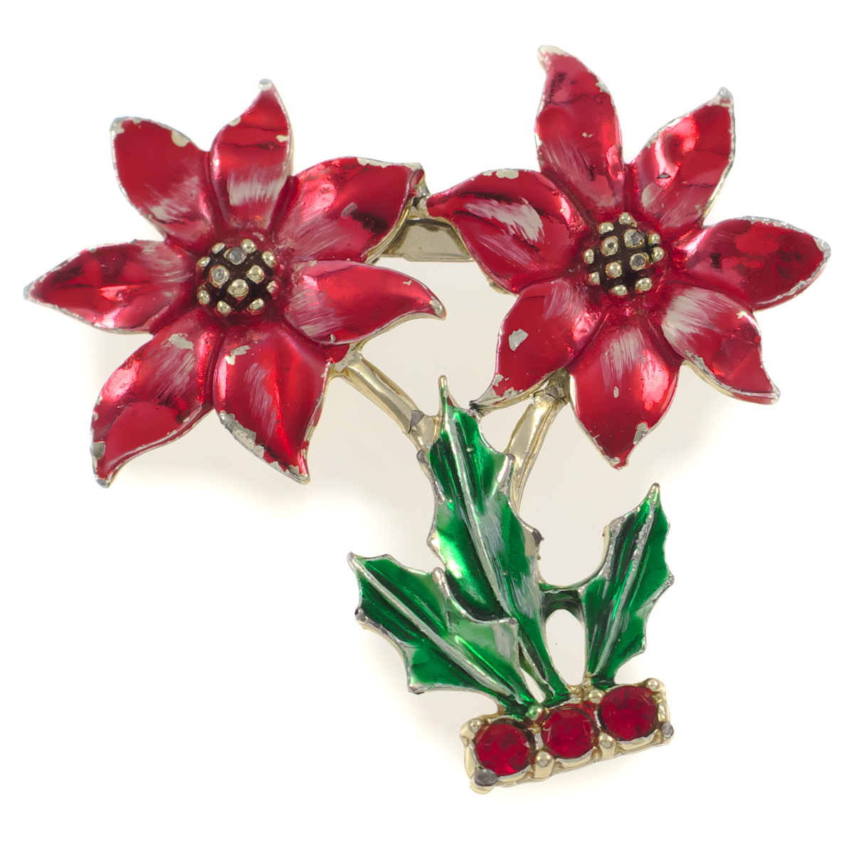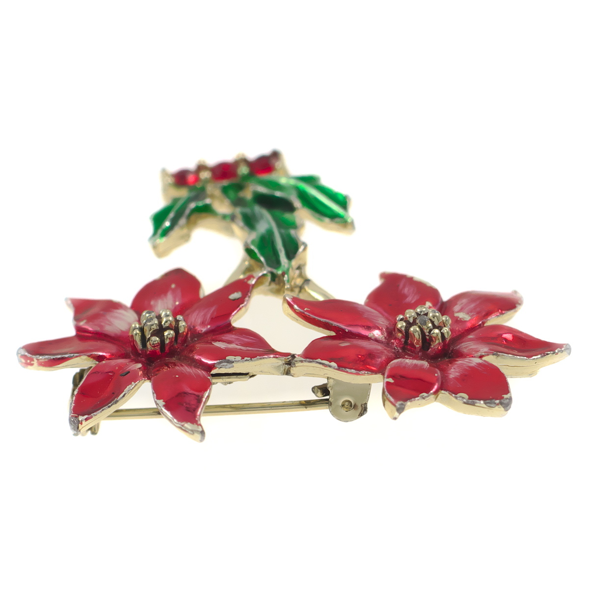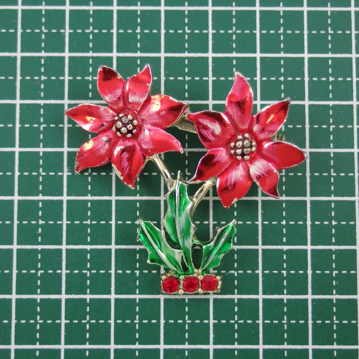 A10870◆【BJ】◆ フラワーモチーフ 赤い花 ポインセチア カラーペイント クリスマス ◆ ヴィンテージブローチ ◆