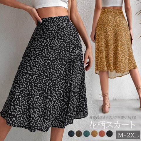 ・華やかなでエレガントな花柄スカート。歩く度に揺れるやわらかな生地感で、女性らしさを演出してくれます。