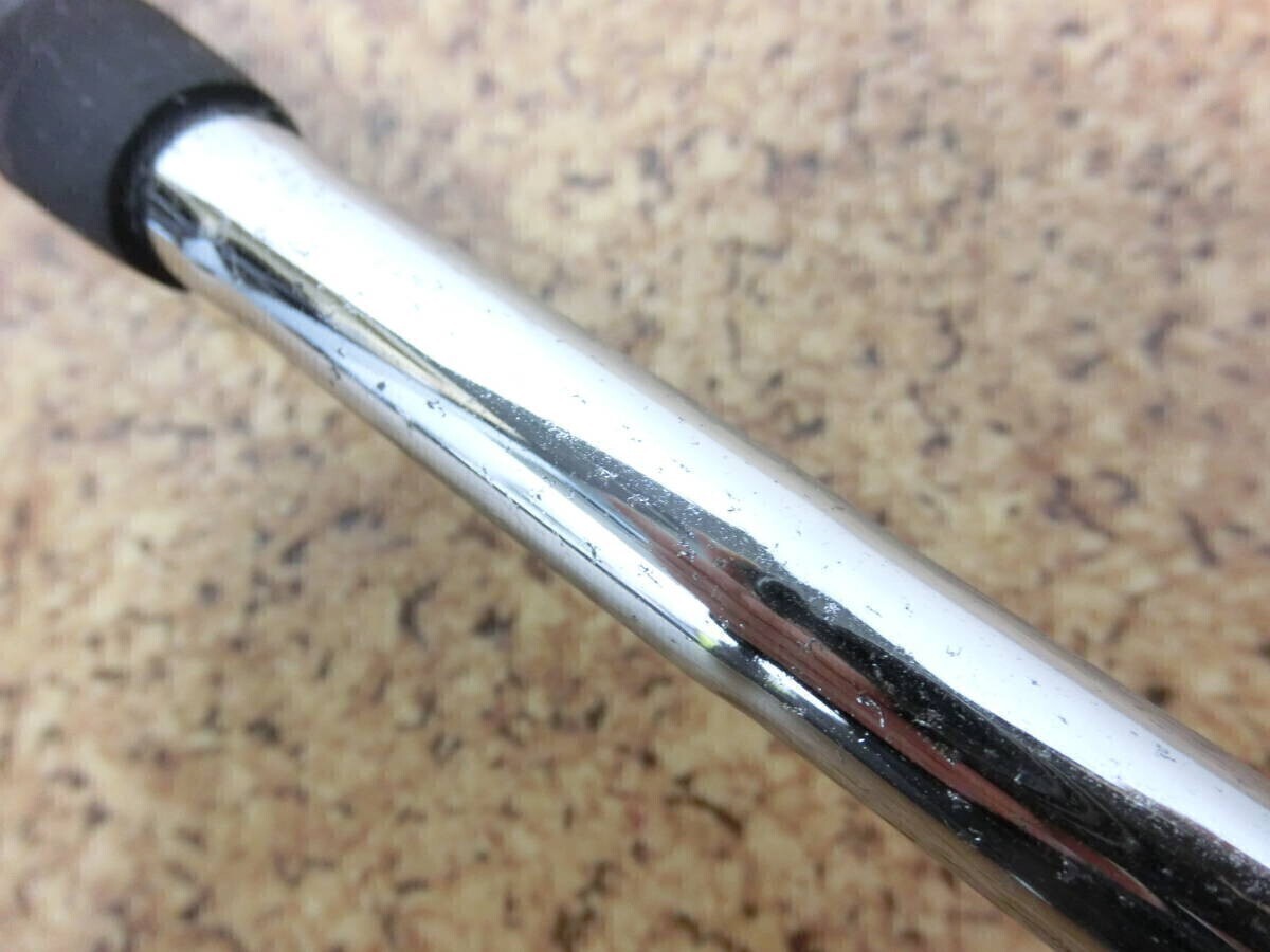 こちらの商品は、使用には差支え御座いませんが、シャフトに小さな細かい点錆が多数御座いますし、グリップに劣化が有り、表面素材が剥がれておりますので、グリップは交換を前提にてご検討下さい。(画像参照)