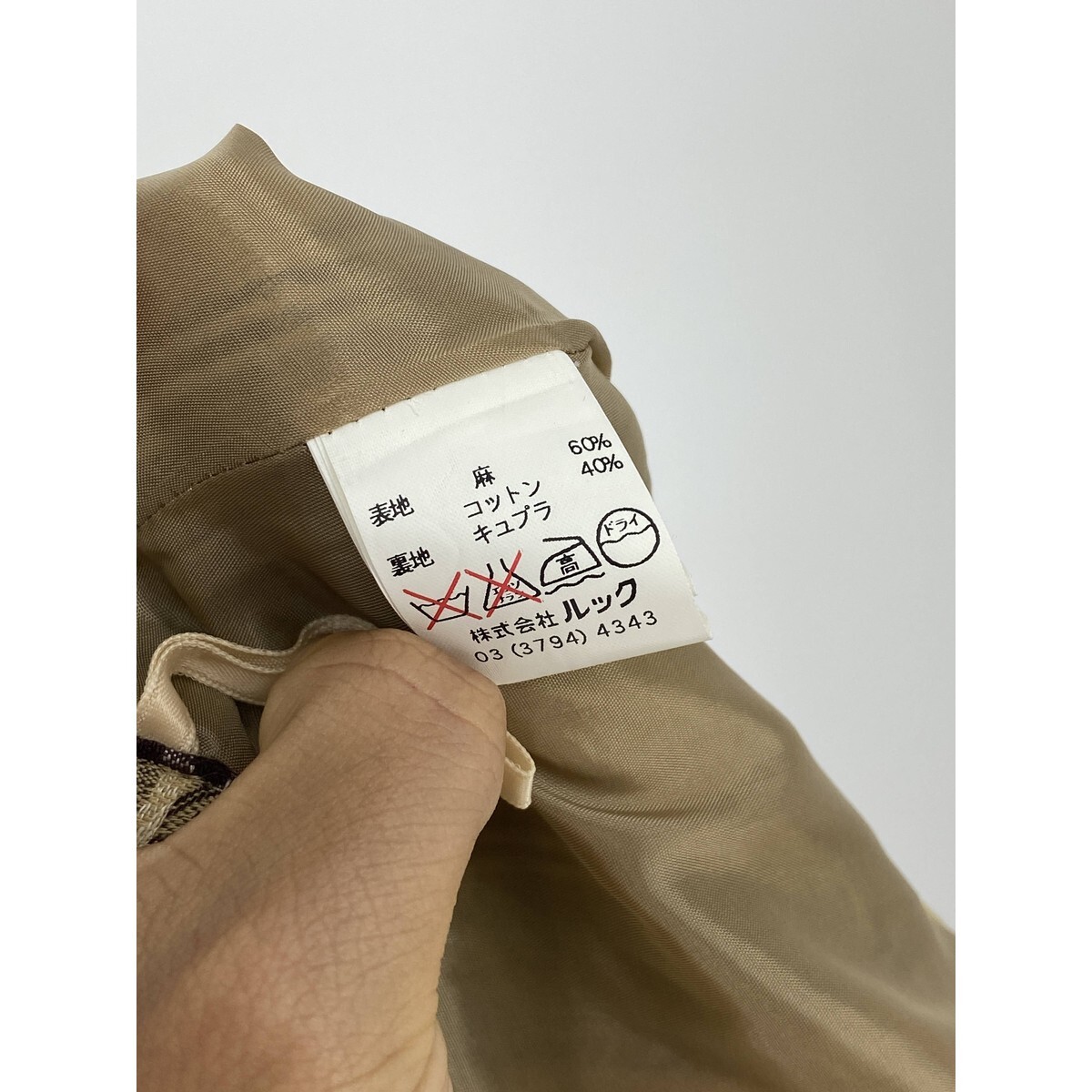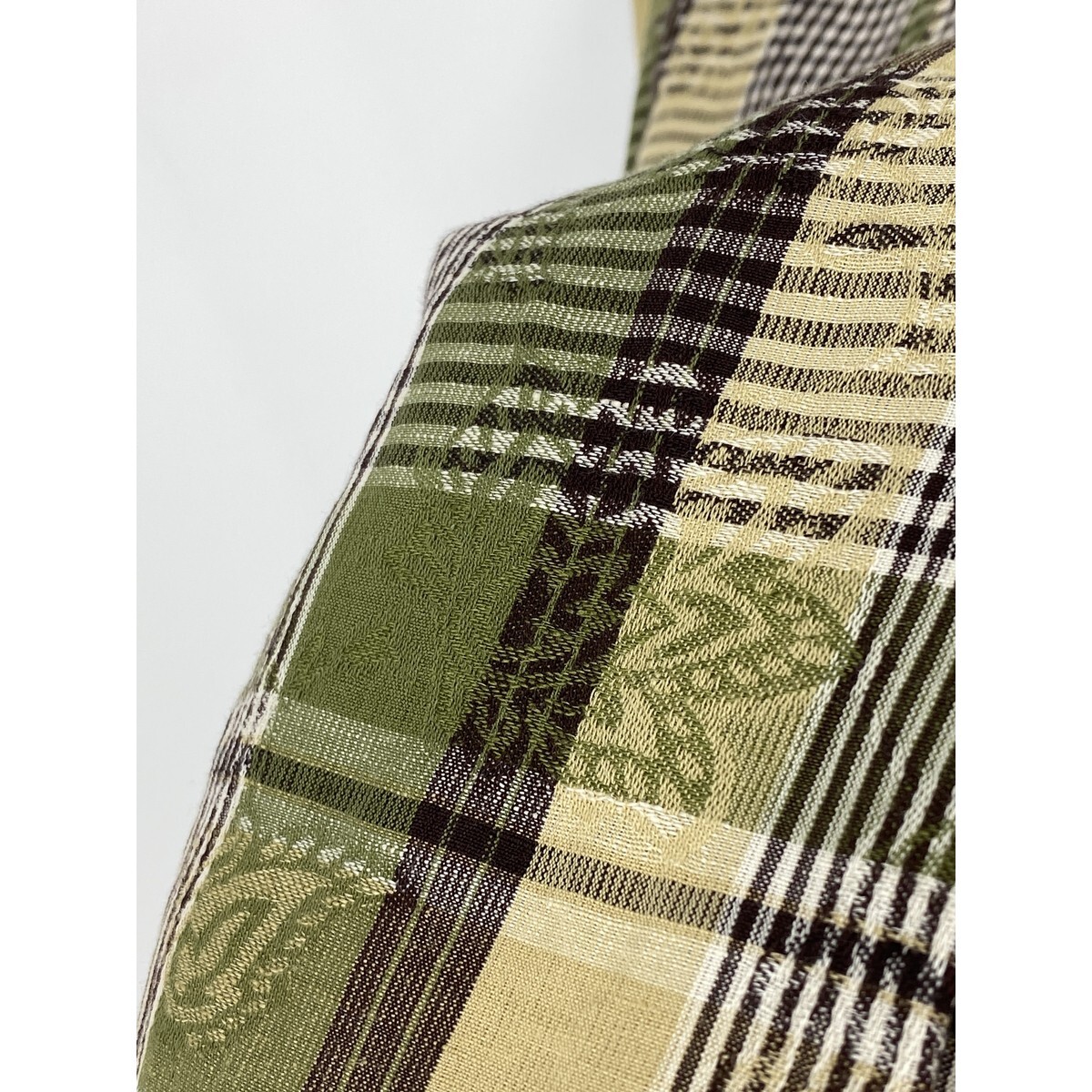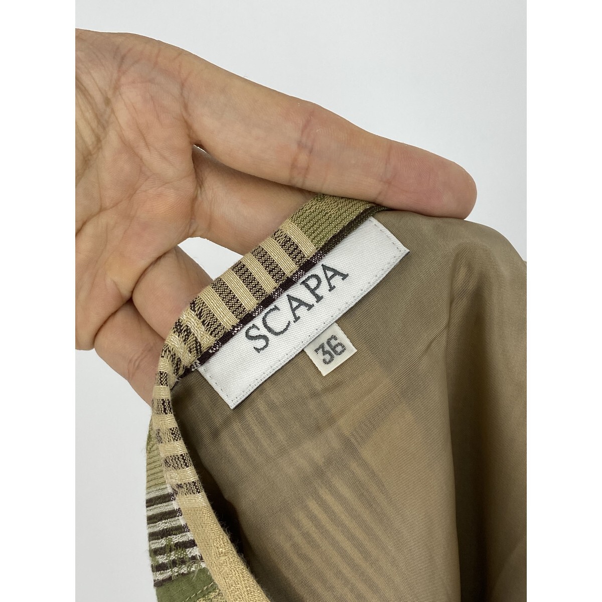 B0401/極美品 SCAPA スキャパ リネン コットン チェック 花柄 総柄 刺繍 プリーツ フレア ロング ミモレ丈 スカート 36 S程 緑 レディース