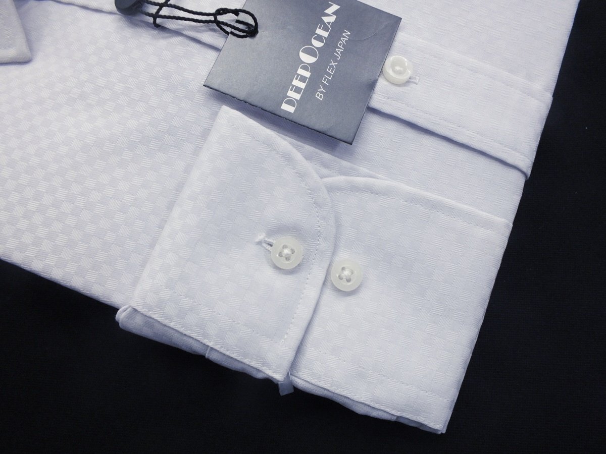 創業70年以上を誇るワイシャツメーカーです。先進性と独創性で「シャツ」を創ってまいりました。ワイシャツの世界は奥深く、肌に馴染むお好みの素材、お気に入りの色や柄、スーツスタイルに合わせて衿型をセレクト・・・こだわればこだわるほど面白い、奥行きのある世界が拡がります。弊社製品は国内のビジネスシーンに留まらず、カジュアルウエアなどにおいてもたくさんの方々にご愛用頂いており、販路も世界に向けてのびています。 「シャツから始まるストーリー。」物語の主人公は「あなた」、支えるのは「私たち」です。ぜひ【FLEXJAPAN】からお気に入りのシャツを見つけてください。 特色 ・綿高率混で比較的長いシーズン着用可能 ・本縫い2本針で丈夫な縫製 ・形態安定加工で手入れが楽々 ブランド:DeepOcean 衿デザイン:レギュラーカラー 体型:普通体 カラー・柄:ライトグレー系のドビー(多少織柄が違います) サイズ:”衿回り41cm-袖丈84cm” 素材:綿50/ポリエステル50 形態安定加工 縫製:中国製 詳細寸法 衿回り37cm 肩幅43cm/胸回り99cm/胴回り90cm/裾回り96cm/後身丈72cm 衿回り38cm 肩幅44cm/胸回り103cm/胴回り94cm/裾回り100cm/後身丈73cm 衿回り39cm 肩幅45cm/胸回り107cm/胴回り98cm/裾回り104cm/後身丈74cm 衿回り40cm 肩幅46cm/胸回り110cm/胴回り102cm/裾回り108cm/後身丈75cm 衿回り41cm 肩幅47cm/胸回り113cm/胴回り106cm/裾回り112cm/後身丈76cm 衿回り42cm 肩幅48cm/胸回り116cm/胴回り111cm/裾回り115cm/後身丈77cm 衿回り43cm 肩幅48cm/胸回り119cm/胴回り115cm/裾回り118cm/後身丈78cm ◎注意 写真のサイズはイメージになりますのでよろしくお願いいたします。 | ||||