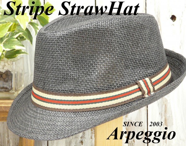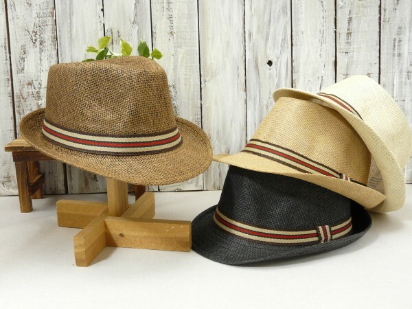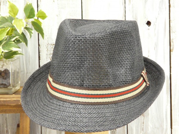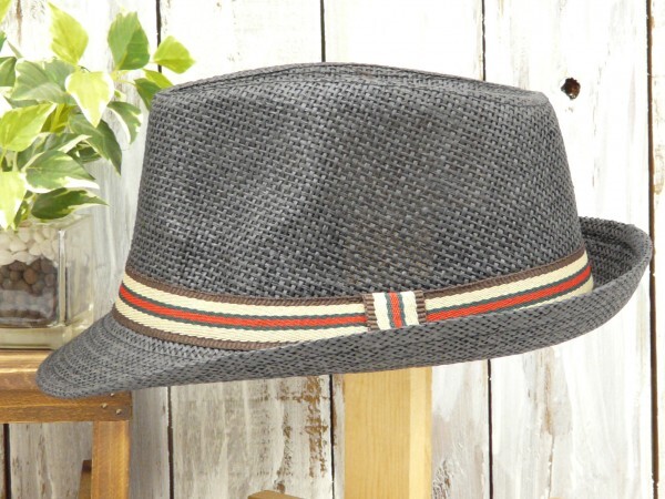 全国一律送料450円 フェドラハット ストライプ ベルト  ブラック 男女OK メンズ レディース  ハット パナマ ボルサリーノ 中折れ