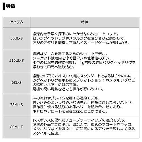 ダイワ 20月下美人 AJING 80ML-T・R■標準全長(m):2.44■継数(本):2■仕舞(cm):126■標準自重(g):85■先径(mm):1.1■元径(mm):11.4■錘負荷(号):2-15■適合ラインナイロン(lb):2-6■適合ラインPE(号):0.15-0.6■カーボン含有率(%):97■発売年:2020年6月≪ダイワ アジングロッド≫