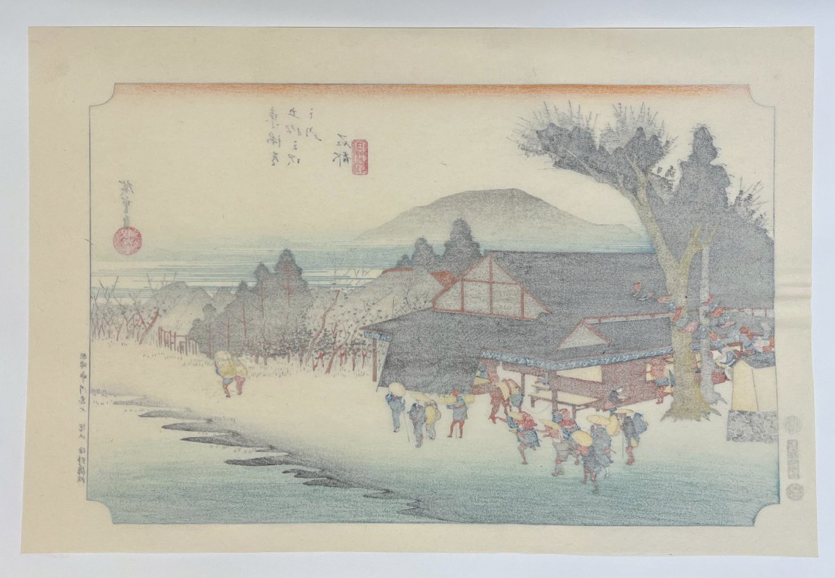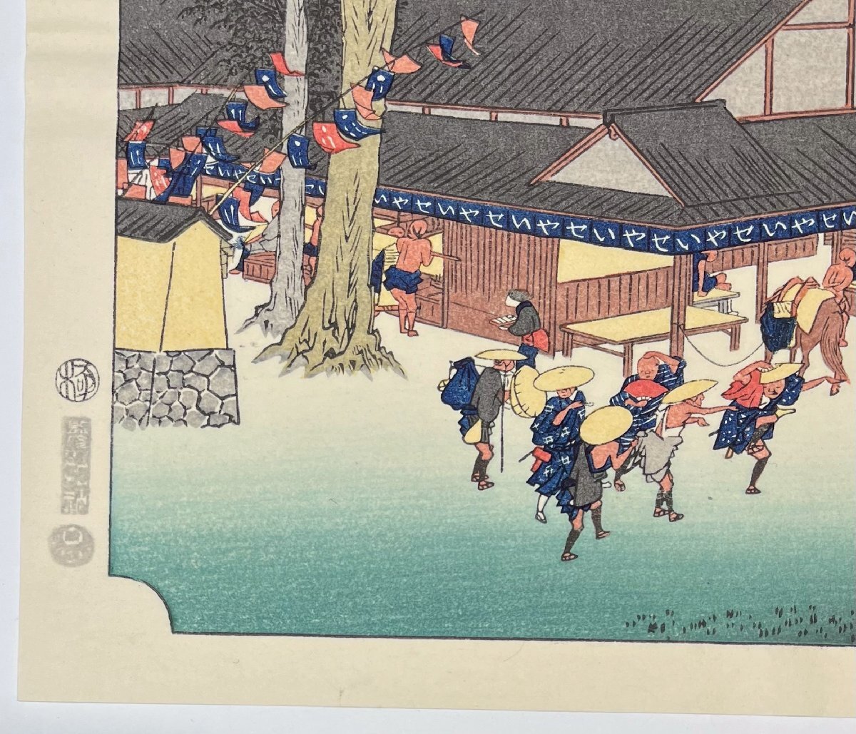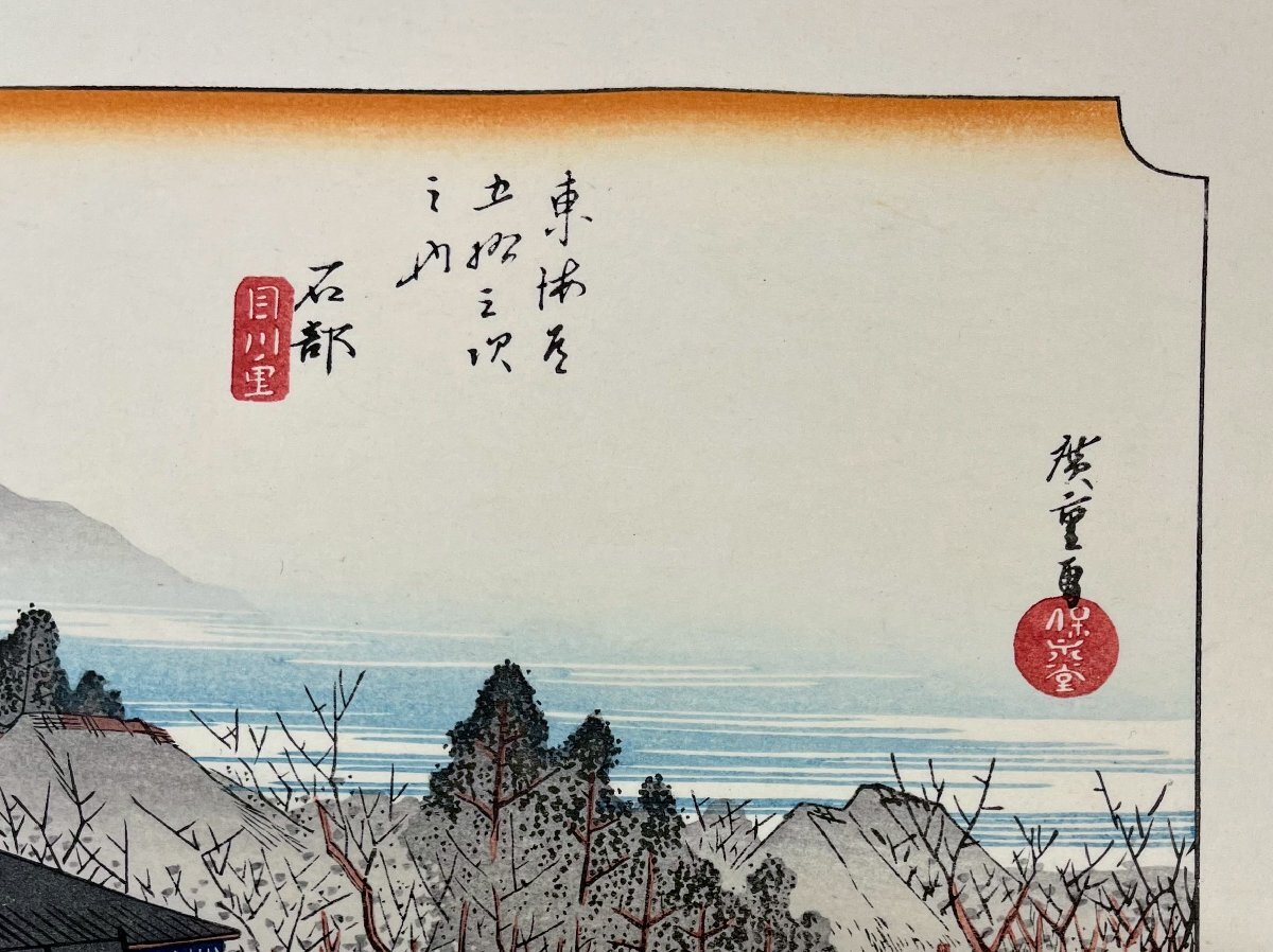 【真作】歌川広重「東海道五十三次 石部-52」木版 保永堂版 浮世絵 錦絵【広重不朽の名作 日本が世界に誇る木版画 woodblock print】